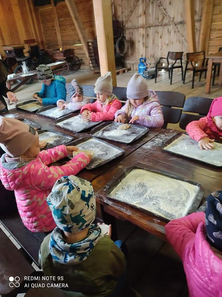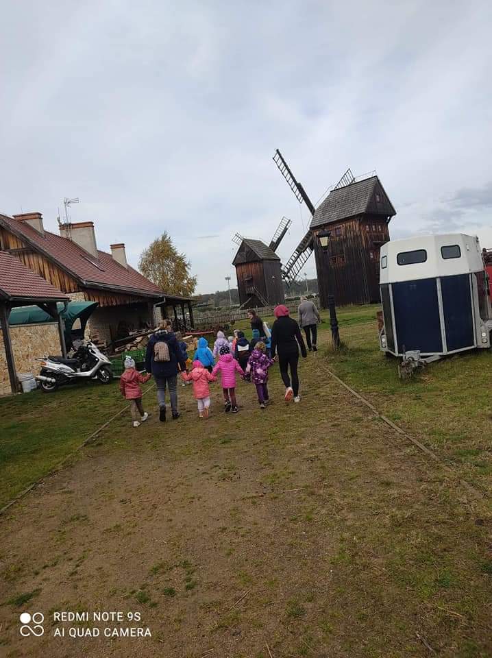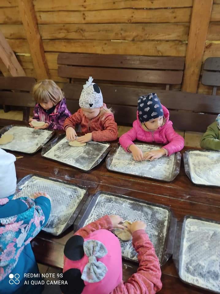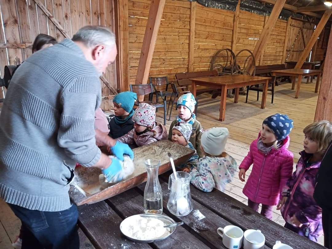 24 października 2022 r. dzieci z oddziału przedszkolnego 0„a” wraz z opiekunami p. Gracjaną Górską, p. Aleksandrą Wardeńską i p. Joanną Gibką pojechały na wycieczkę do Zagrody Młynarskiej w Uniejowie. Przedszkolaki uczestniczyły w warsztatach „ABC o chlebie”, podczas których poznały tajniki pieczenia chleba. Dużą atrakcją okazało się własnoręczne przygotowanie podpłomyków, które po upieczeniu wszyscy ze smakiem skosztowali. Dzieci miały także okazję zobaczyć zabytkowy wiatrak oraz zwierzęta mieszkające w zagrodzie. Do przedszkola dzieci wrócili w bardzo dobrych humorach, pełni wrażeń i miłych wspomnień.