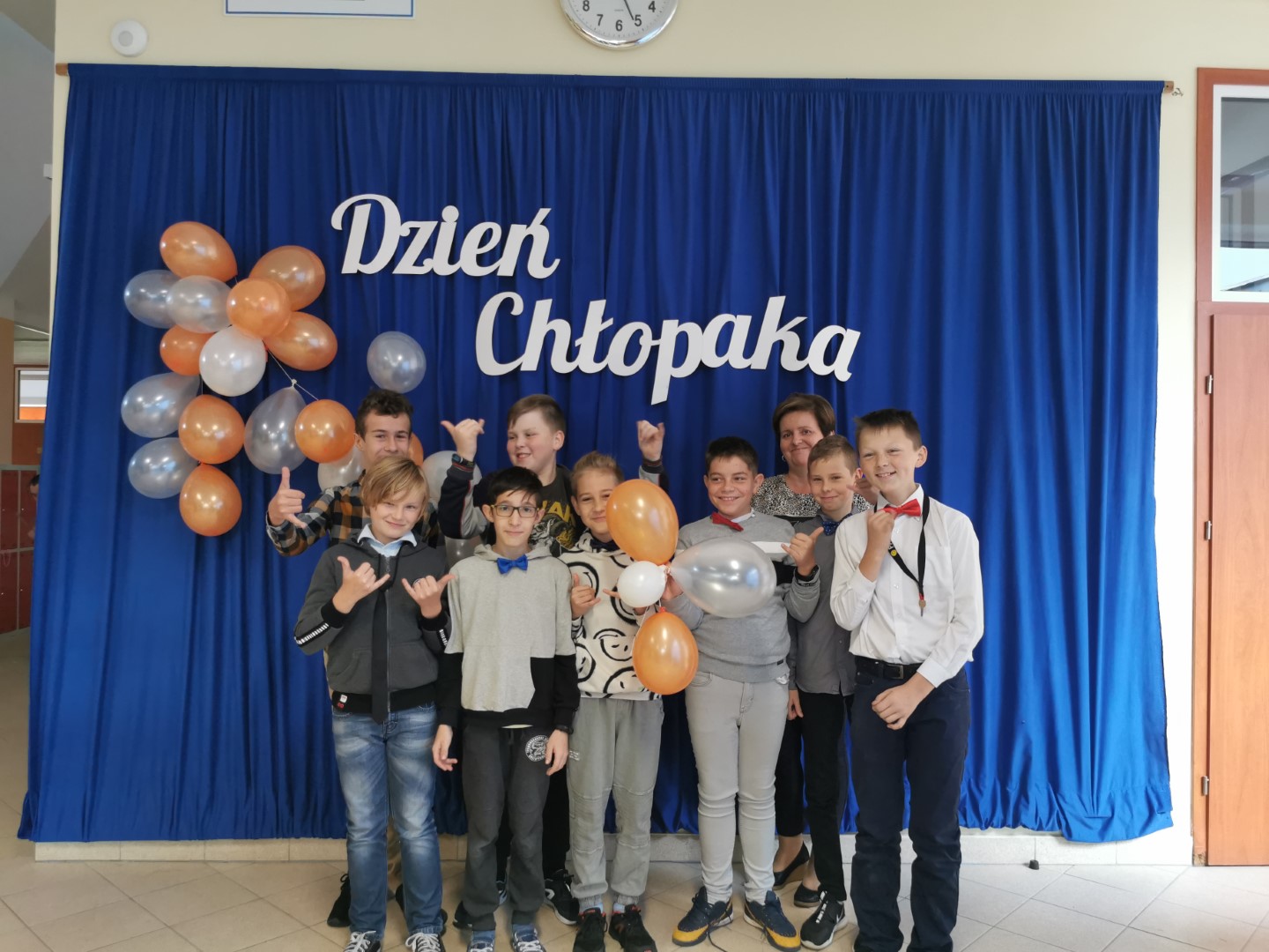 W tym szczególnym dniu najlepsze życzenia Chłopakom z naszej szkoły złożyły dziewczynki z Samorządu Uczniowskiego. Dla naszych chłopców przygotowano również słodycze oraz sesję zdjęciową. Podkreśleniem ważności tego dnia był „drobny” element męskiego stroju – krawat lub mucha. I tu uczniowie nie zawiedli, większość chłopców paradowała po szkole pod krawatem lub muchą.