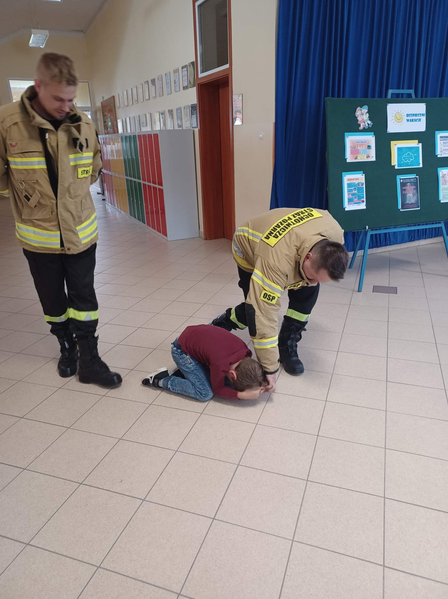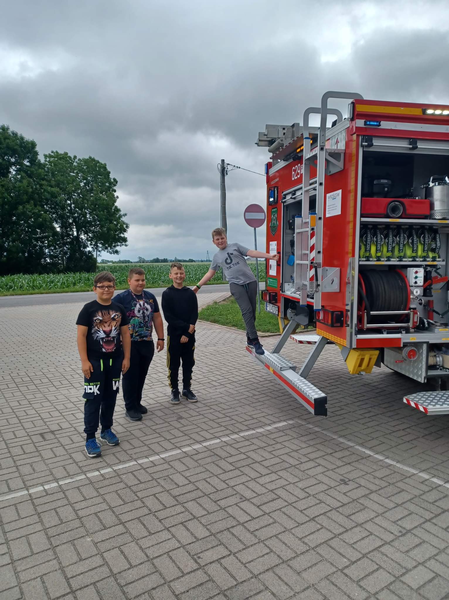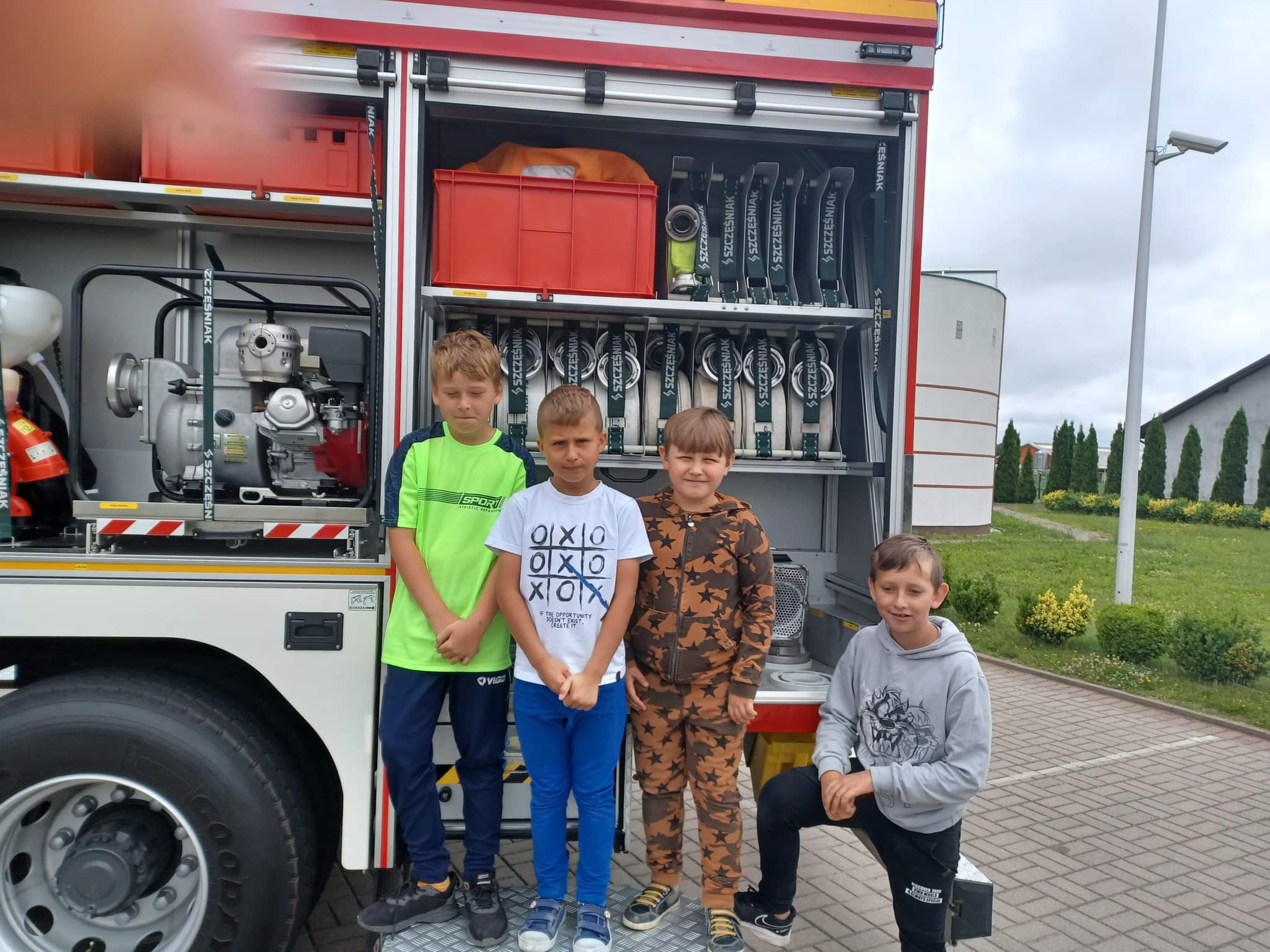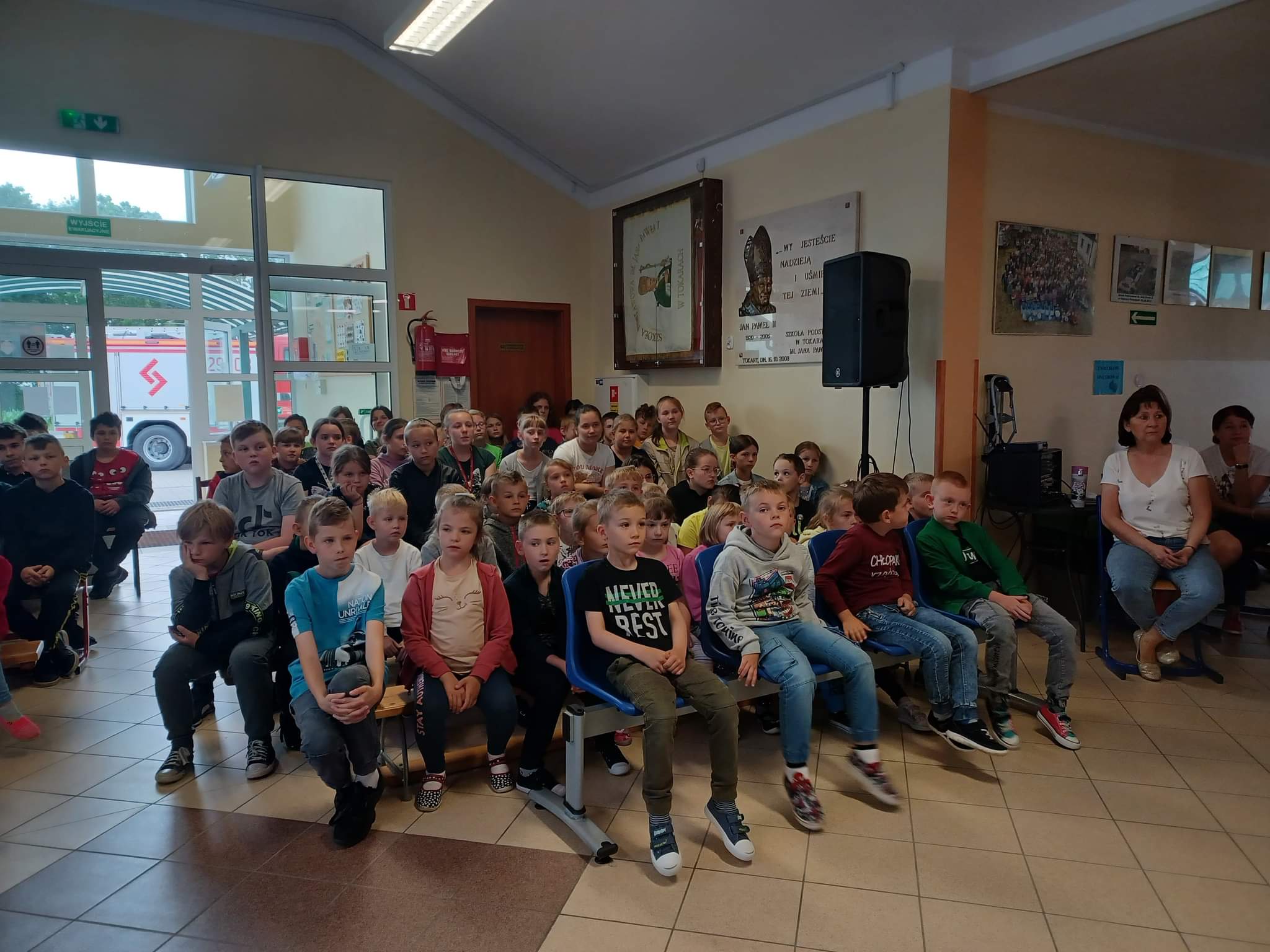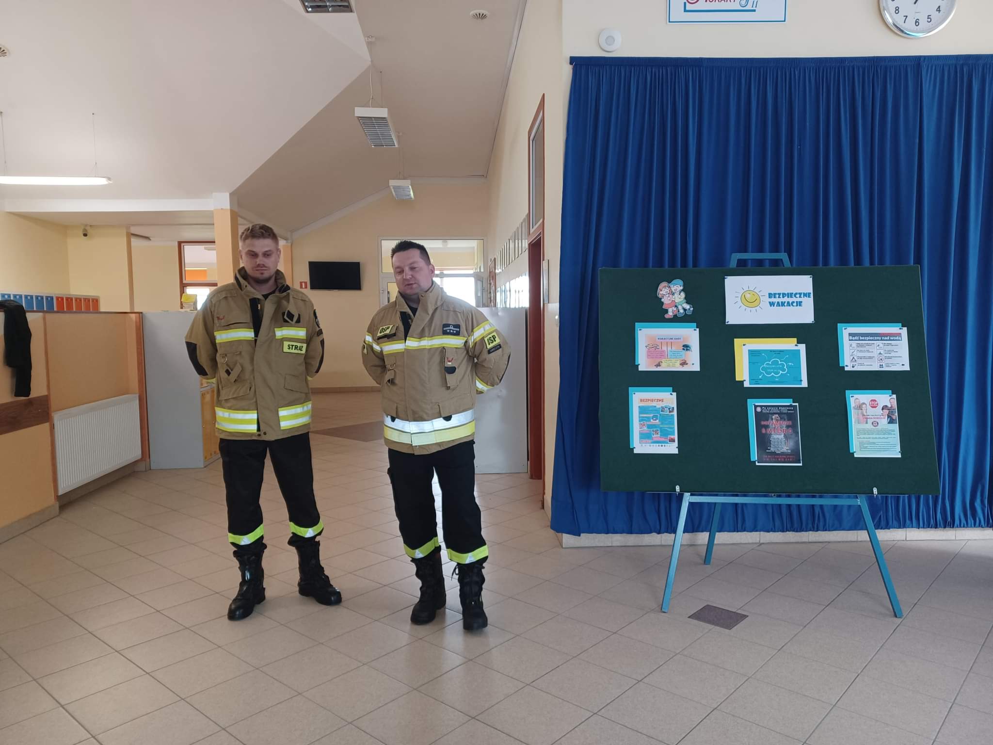 Wakacje to czas zabawy, wypoczynku i wyjazdów dzieci oraz młodzieży nad morze, jeziora, w góry, na kolonie, obozy czy do rodziny. Możemy znaleźć się wówczas w różnych sytuacjach stwarzających zagrożenie dla zdrowia i życia. Przestrzeganie zasad bezpieczeństwa oraz właściwe zachowanie się podczas wakacji jest gwarancją spokojnego pobytu i uniknięcia sytuacji zagrażających życiu oraz zdrowiu. W związku z tym 21 czerwca w naszej szkole mogliśmy gościć strażaków z OSP w Kawęczynie: Komendanta Zarządu Oddziału Gminnego OSP w Kawęczynie Michała Chachułę i Mateusza Glapę, Zastępcę Naczelnika. Uczniowie dowiedzieli się, jakie niebezpieczeństwa czekają na nich w okresie wakacyjnym, na co trzeba zwracać uwagę podczas wspólnych zabaw wakacyjnych oraz jak zareagować i udzielić pomocy poszkodowanemu. Dzieci uzyskały też informację, w jakich okolicznościach należy wzywać straż pożarną oraz utrwaliły sobie numery alarmowe. Miały także możliwość zobaczenia wyposażenia wozu strażackiego. Ci, których interesuje ofiarna praca strażaków, mogli też przez chwilę poczuć się kierowcą tego wyjątkowego pojazdu.