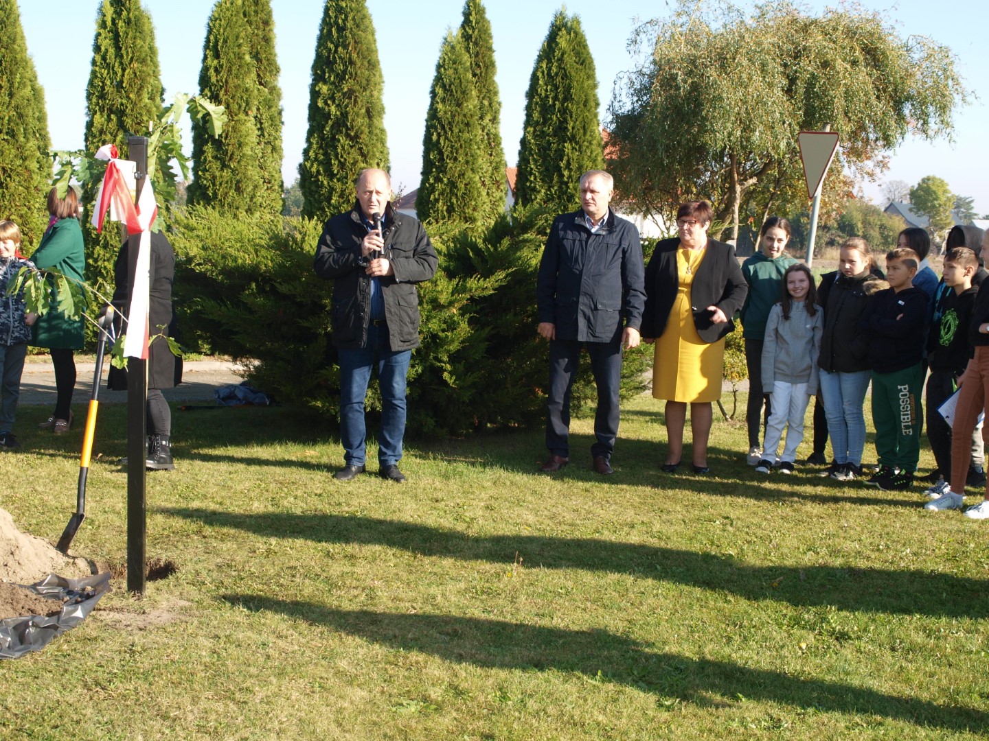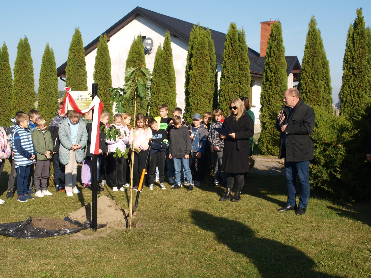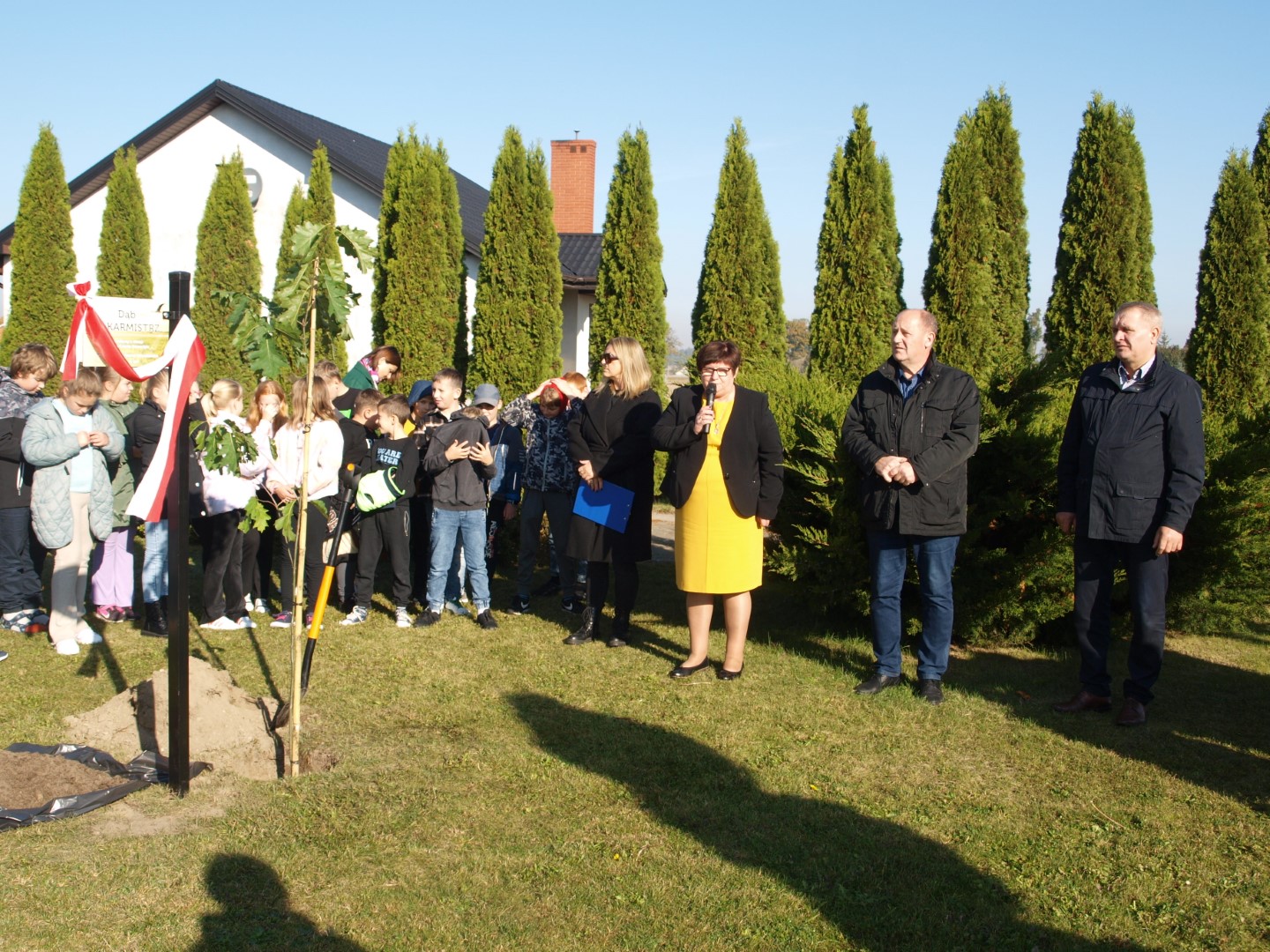 Uroczystość zakończyło wspólne posadzenie dębu, w którym uczestniczyli przedstawiciele samorządu gminnego: Wójt Jan Nowak, Wiceprzewodniczący Rady Gminy – Sylwester Kasprzak oraz dyrektor Szkoły - Ewa Wojtczak i uczennica Lena Kolasińska.