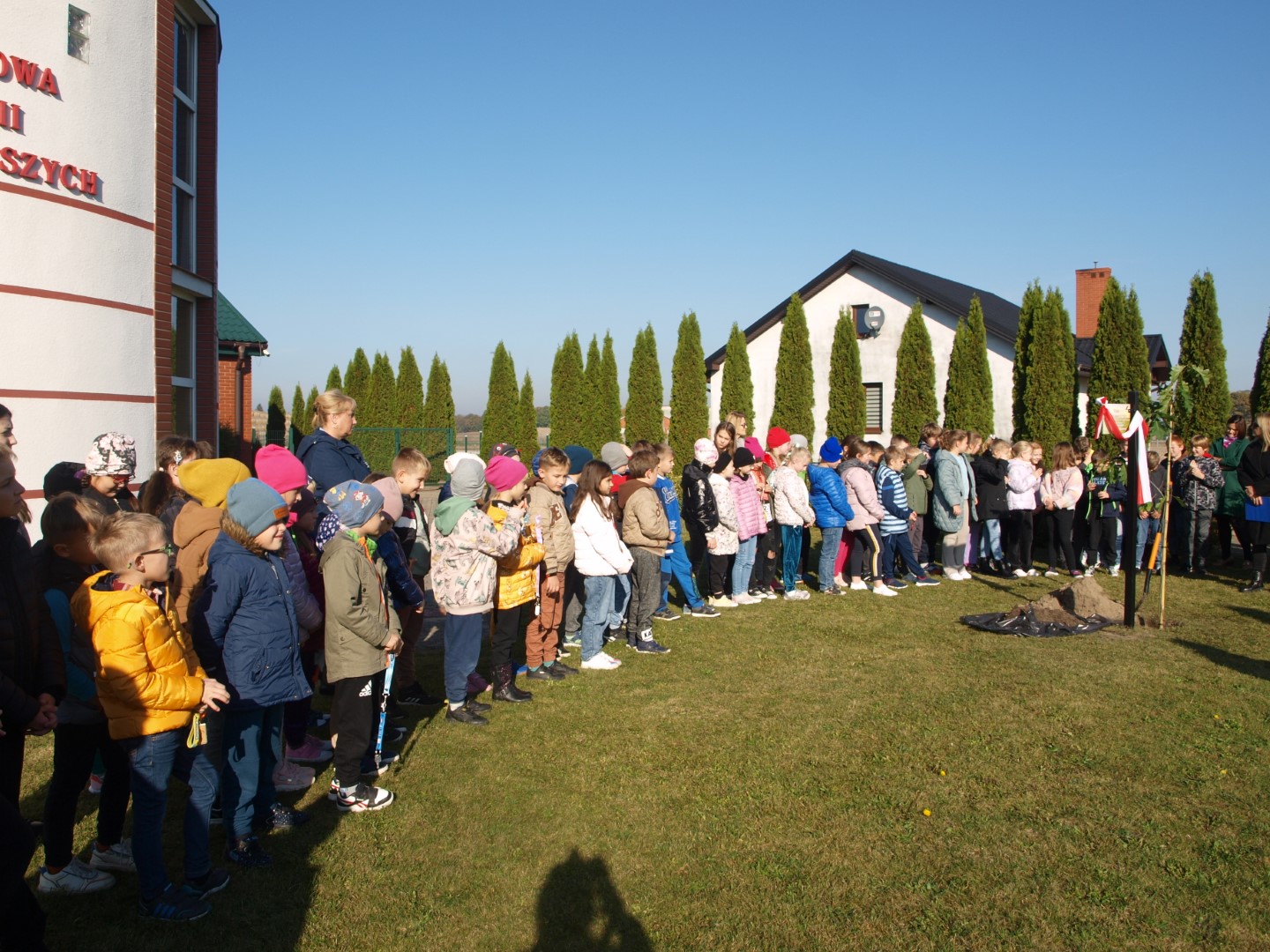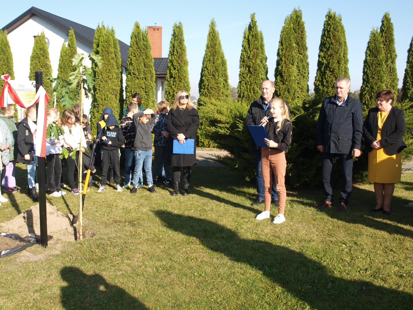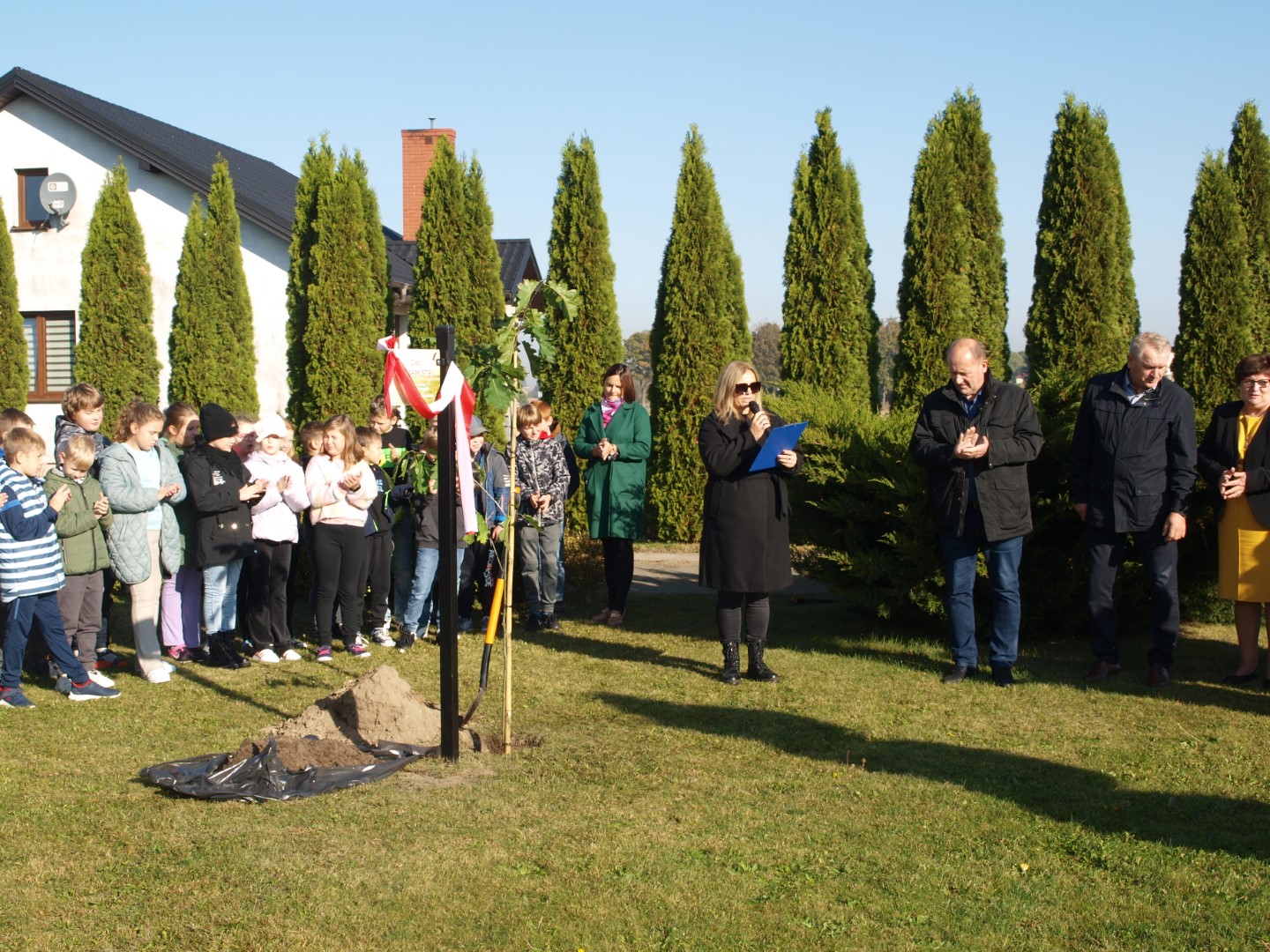 Uroczystość zakończyło wspólne posadzenie dębu, w którym uczestniczyli przedstawiciele samorządu gminnego: Wójt Jan Nowak, Wiceprzewodniczący Rady Gminy – Sylwester Kasprzak oraz dyrektor Szkoły - Ewa Wojtczak i uczennica Lena Kolasińska.