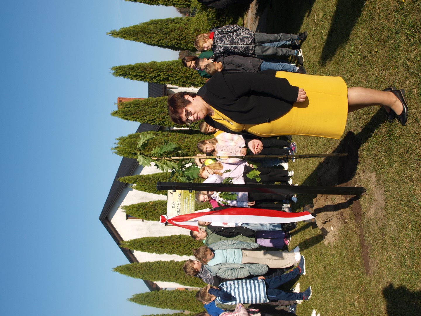 W swoim przemówieniu pani dyrektor Ewa Wojtczak nawiązała do symboliki dębu, który od wieków ma swoje miejsce w kulturze i tradycji jako symbol długowieczności, siły i szlachetności. Ten żywy pomnik przyrody już na stałe wpisał się w historię naszej małej Ojczyzny.