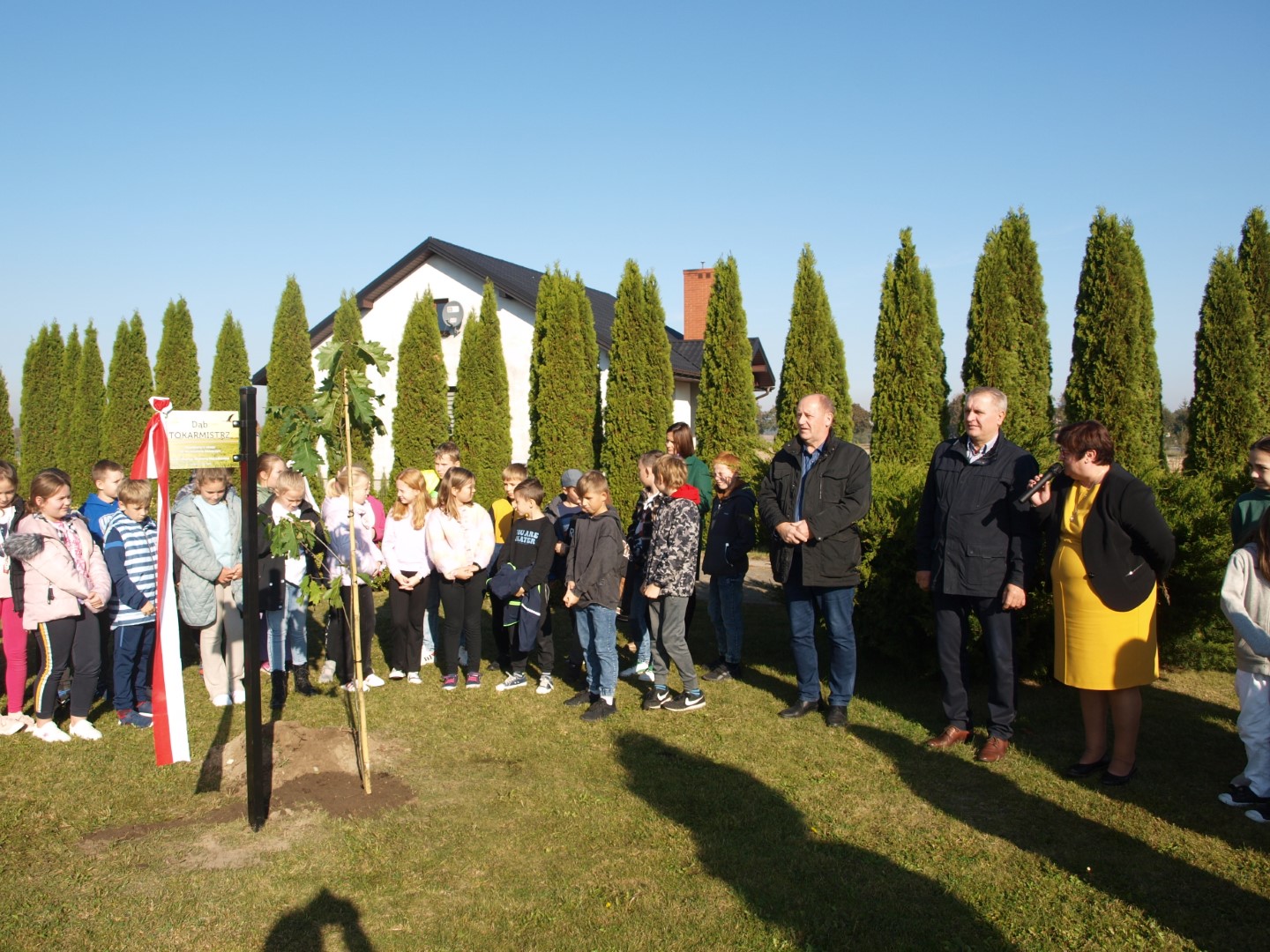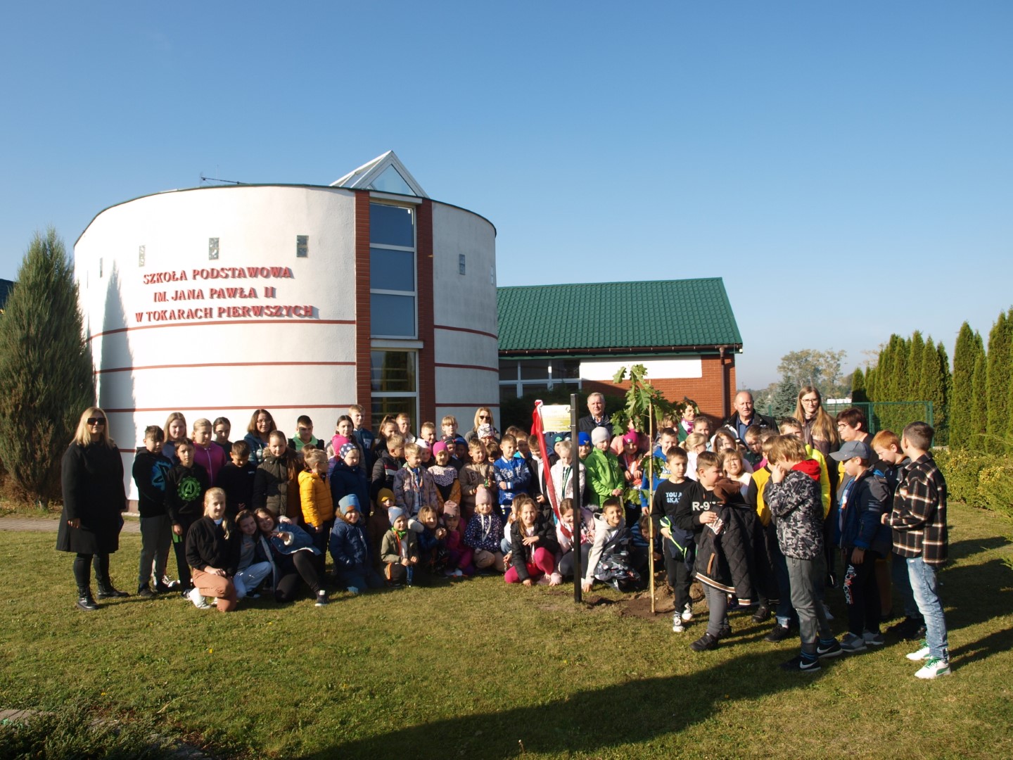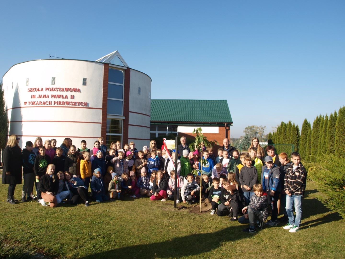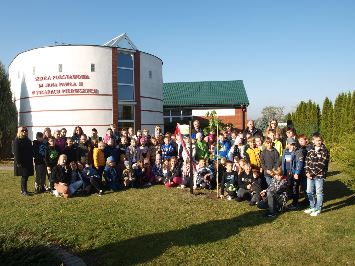 W środę, 18 października br. społeczność Szkoły Podstawowej im. Jana Pawła II w Tokarach Pierwszych uczestniczyła w uroczystości sadzenia Dębu TOKARMISTRZ dla uhonorowania jubileuszu 50-lecia Gminy Kawęczyn.
