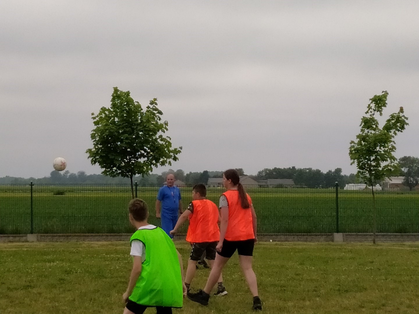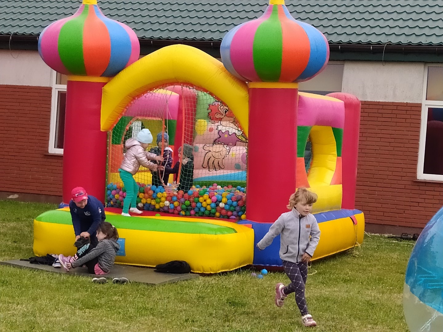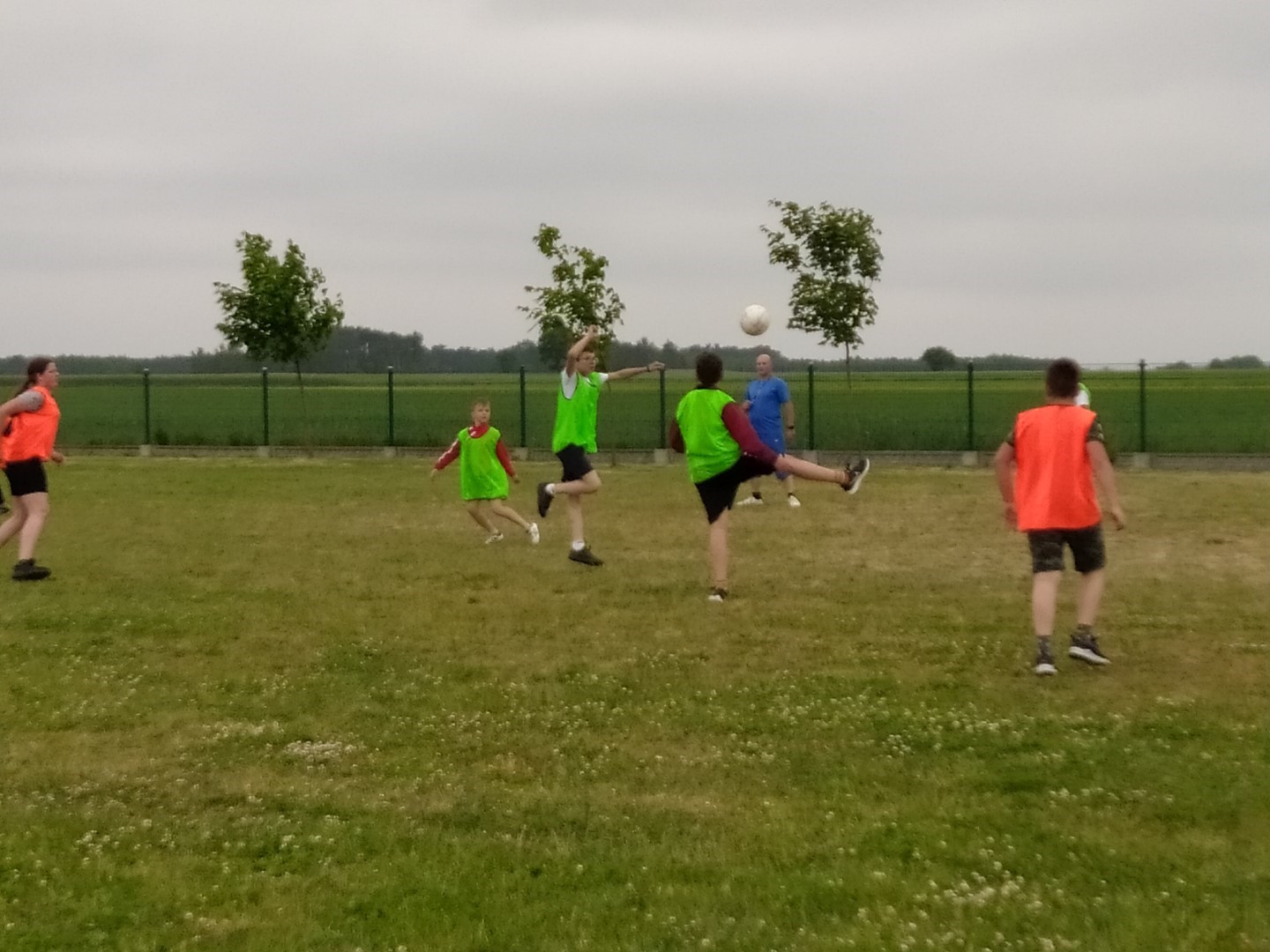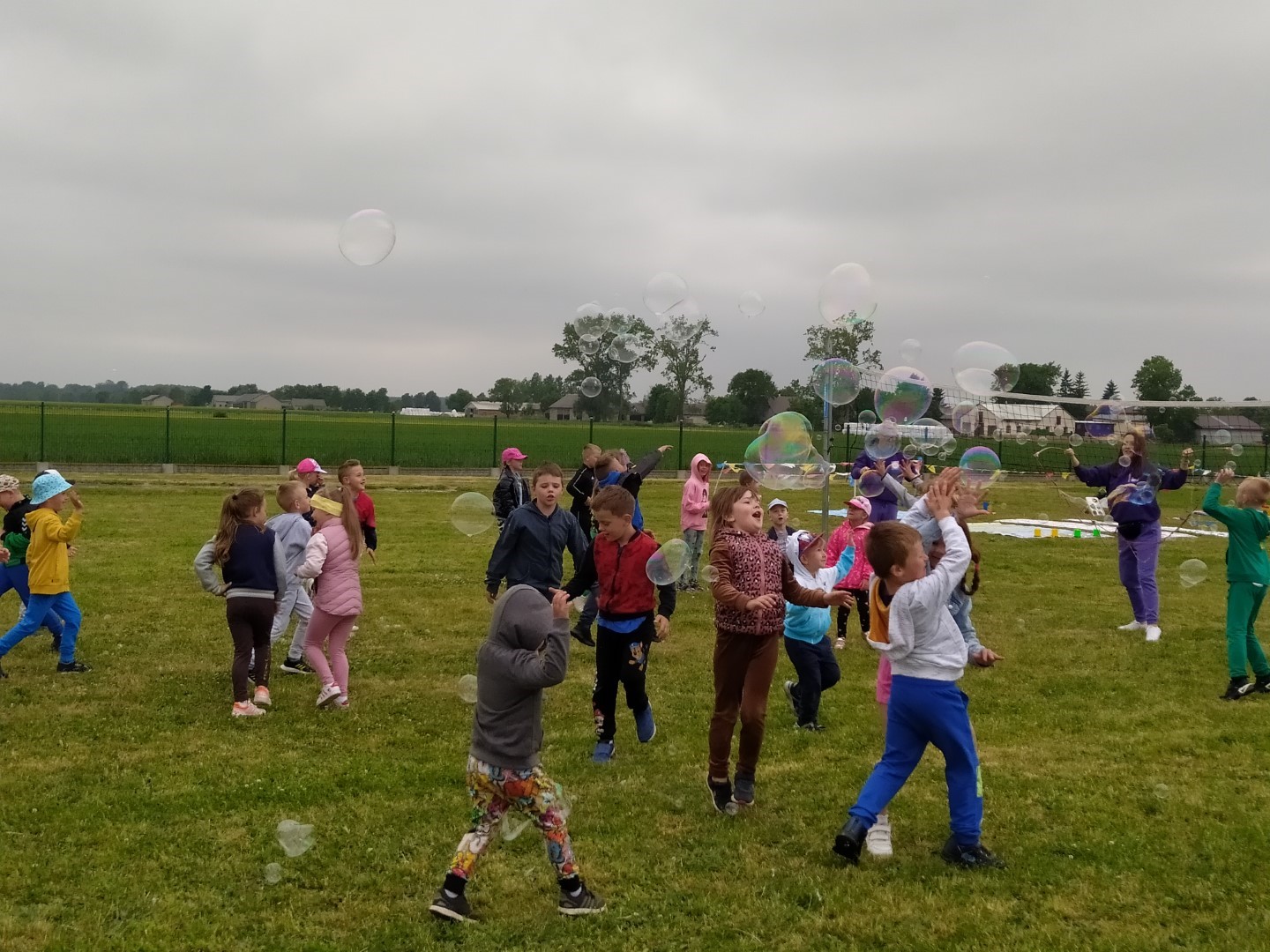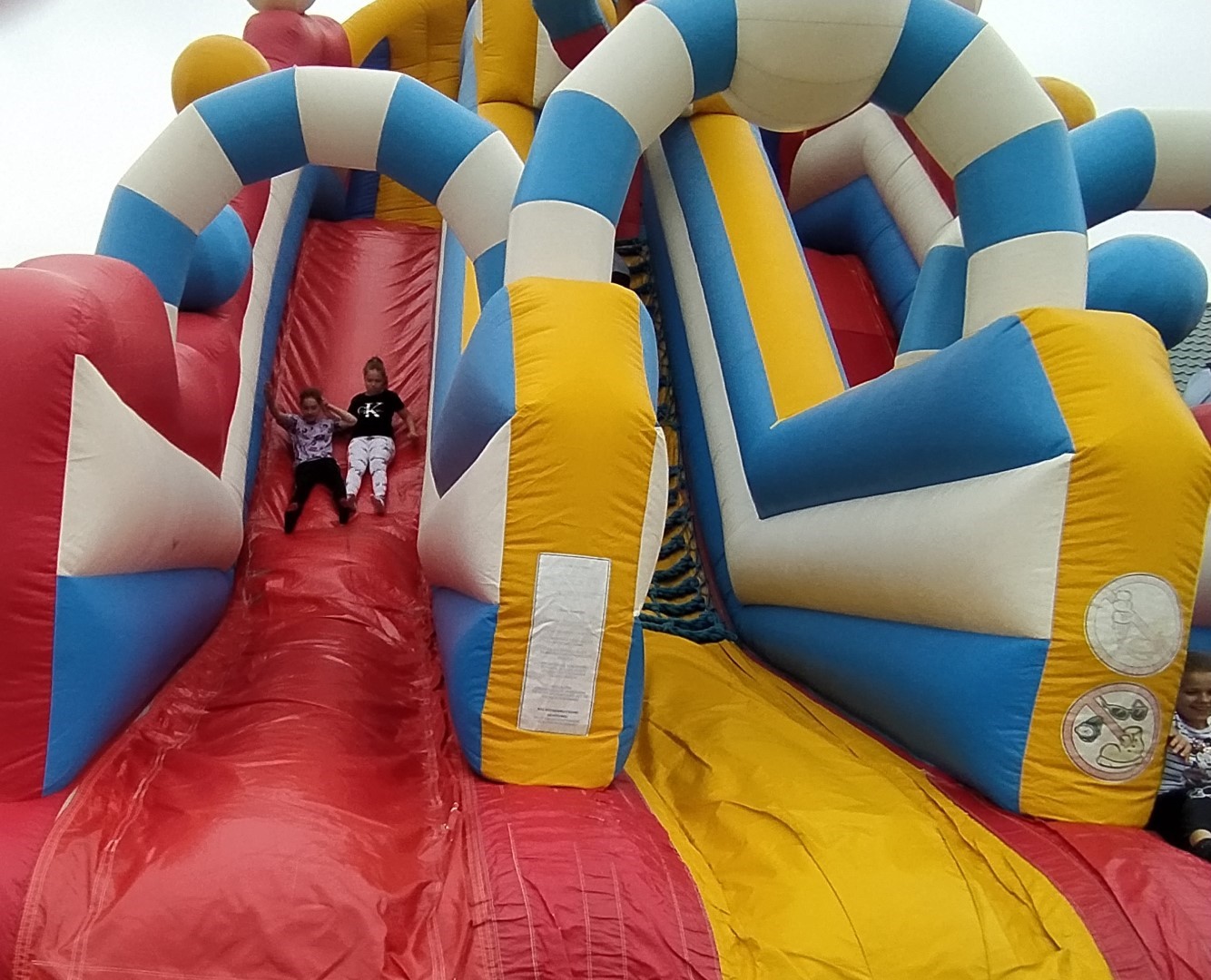 Impreza odbywała się na szkolnych boiskach, jednak echo zabawy roznosiło się po całej okolicy. Już kilka minut po godzinie ósmej entuzjaści piłki nożnej usłyszeli pierwszy gwizdek rozpoczynający turniej piłkarski. Piłka nożna cieszy się coraz większym zainteresowaniem i wzbudza wiele emocji, a liczba fanów tej konkurencji sportowej ciągle wzrasta. Nic więc dziwnego, że rozgrywki przyciągnęły wielu kibiców, którzy dopingowali swoich faworytów oraz cieszyli się ze zwycięstwa  i zdobytych punktów. Dzieciaki mogły wybawić się również na trampolinach. Ponadto (podobnie jak w ubiegłym roku) w szkole gościł „Wesoły Duecik”. Animatorzy przygotowali mnóstwo atrakcji. Były ogromnych rozmiarów bańki mydlane,  konkursy, iluzja, malowanie twarzy oraz dużo muzyki. Niecodzienną darmową atrakcją były również ogromne zjeżdżalnie. Chyba wszyscy skorzystali z „Giganta” i odwiedzili „Chatkę Smerfów”. Maluszki z uśmiechem na twarzy wskakiwały w kolorowe kulki, natomiast trochę starsi sprawdzali swoją sprawność na byczku, który choć trochę nerwowy, nie wyrządził nikomu krzywdy. Dużym powodzeniem cieszyły się dmuchane kule Bumper Ball. Dzięki nim uczniowie, pomimo różnicy wzrostu, mogli biegać, zderzać się ze swymi kolegami oraz bez obaw upadać na ziemię.