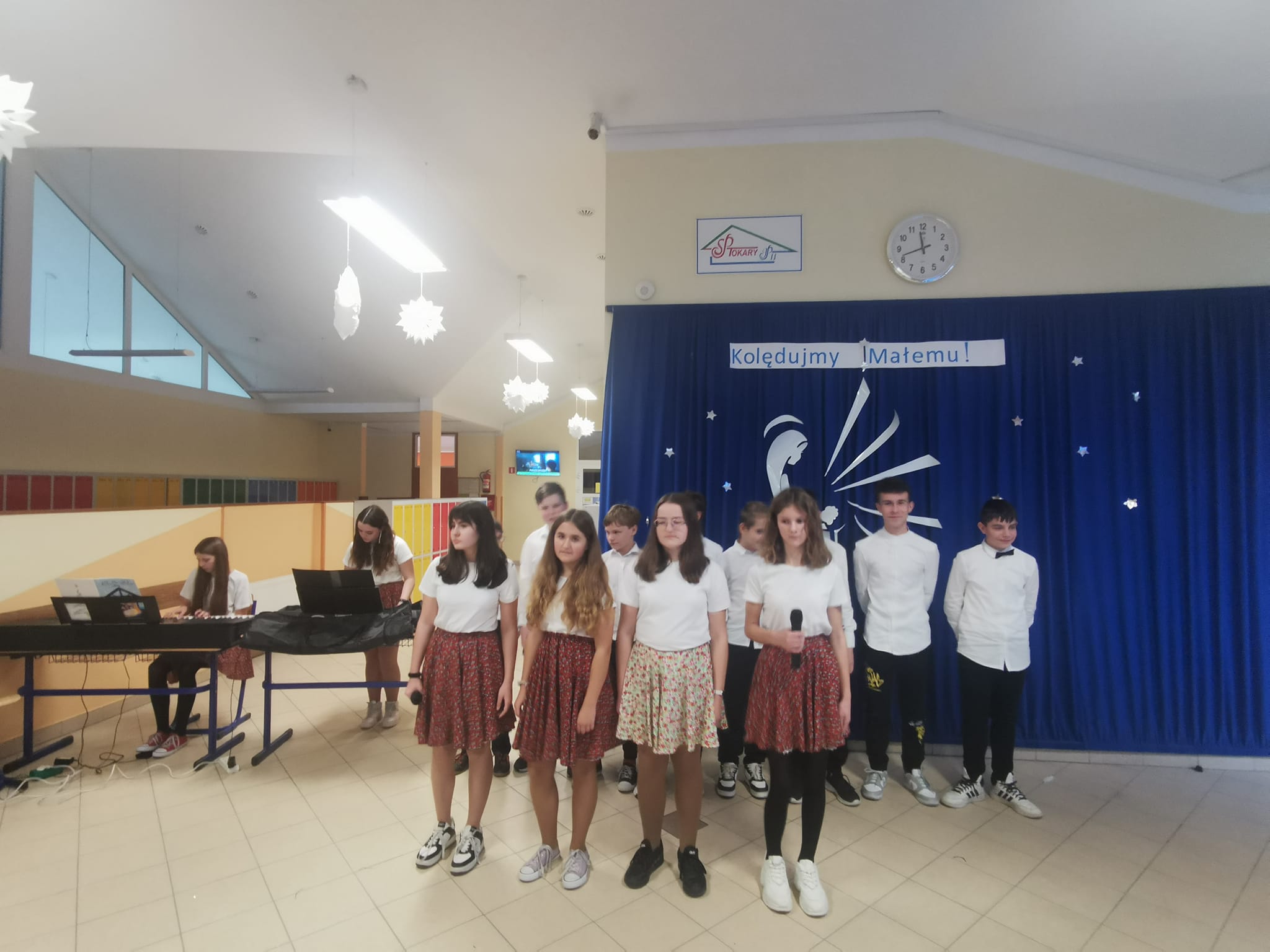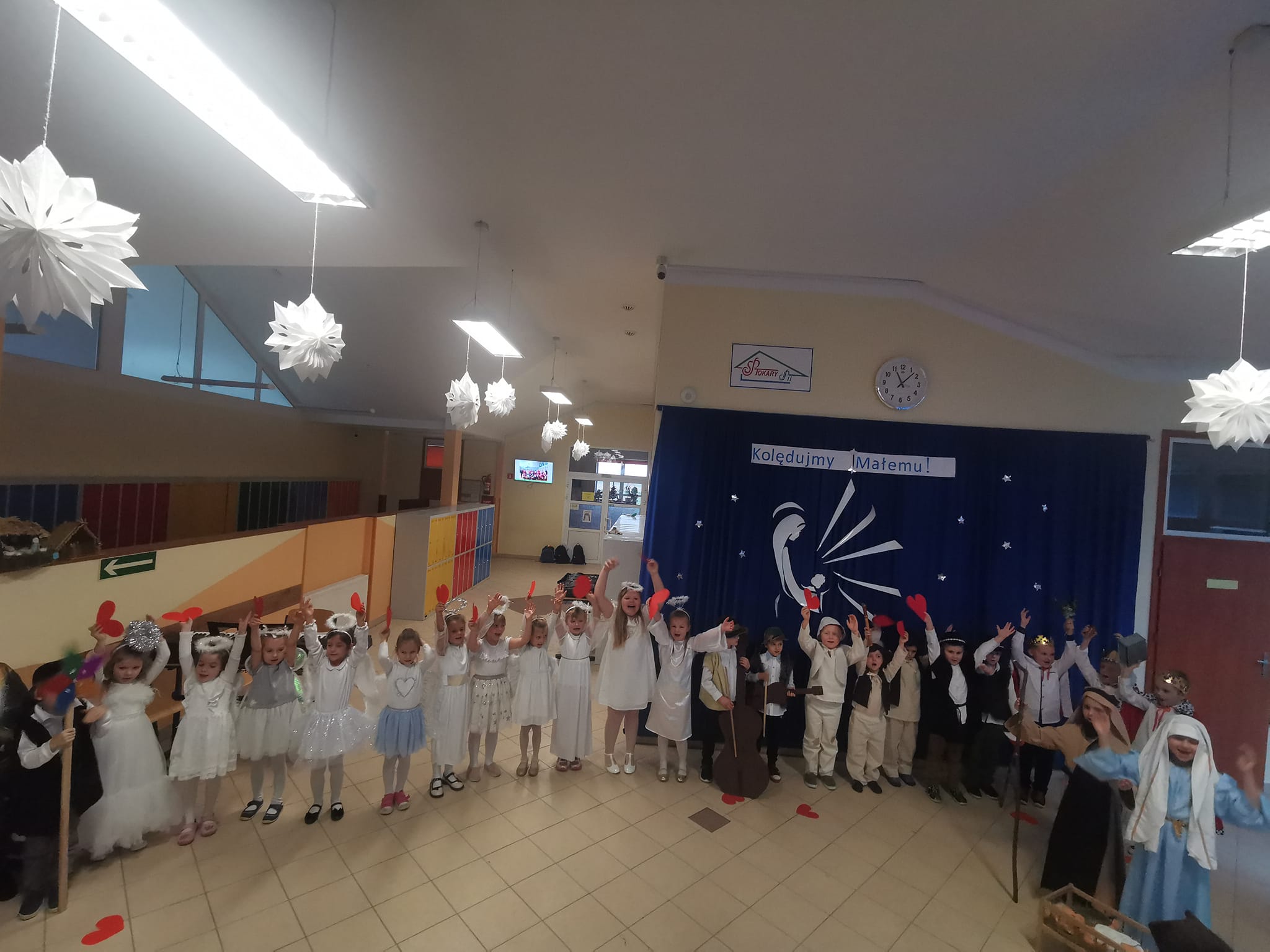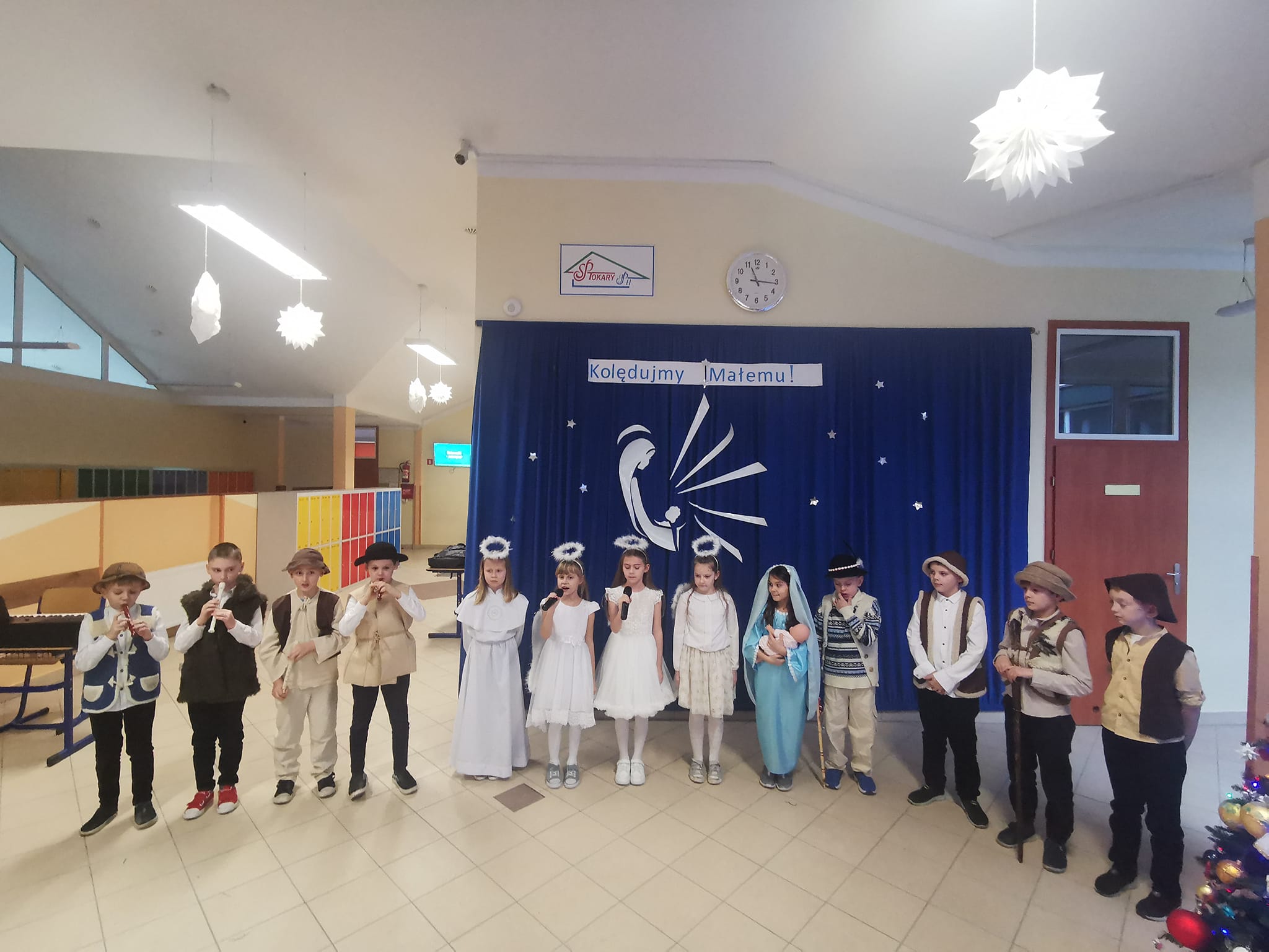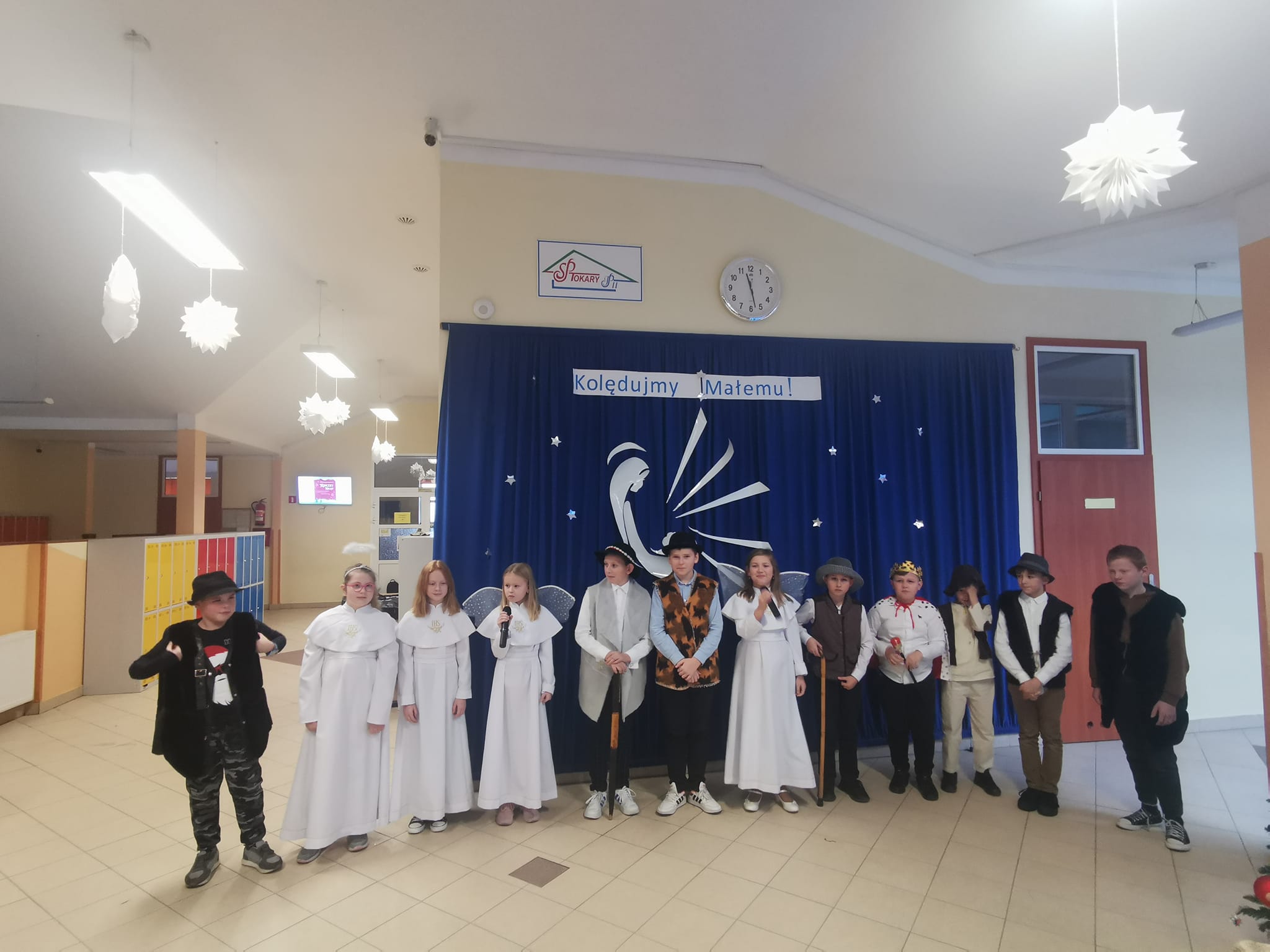 14.12.2023r. odbył się w naszej szkole Koncert Kolęd i Pastorałek. W tym roku, zgodnie z regulaminem, należało zaprezentować polską pastorałkę. W koncercie wzięły udział wszystkie klasy oraz oddziały przedszkolne. Poszczególne klasy zaprezentowały się w następujących pastorałkach: oddział przedszkolny 0a „Bosy pastuszek”, oddział przedszkolny 0b „Cieszmy się, kl. I – „Przybieżeli do Betlejem”, kl. II – „Do szopy, hej pasterze”, kl. III – „Dzisiaj w Betlejem”, kl. IV – „Z narodzenia Pana”, kl. V – „Pójdźmy wszyscy”, kl. VI – „Gore gwiazda Jezusowi”, kl. VII – „Pastorałka od serca do ucha”. Wszyscy, oprócz pięknego wykonania przygotowali na tę okoliczność przepiękne stroje oraz rekwizyty, co dodało całości uroku i wprowadziło świąteczny nastrój. Pani Renata Piontkowska, organizator koncertu, przygotowała krótką informację na temat każdej pastorałki oraz słodkie upominki dla wszystkich zasponsorowane przez szkolny sklepik.