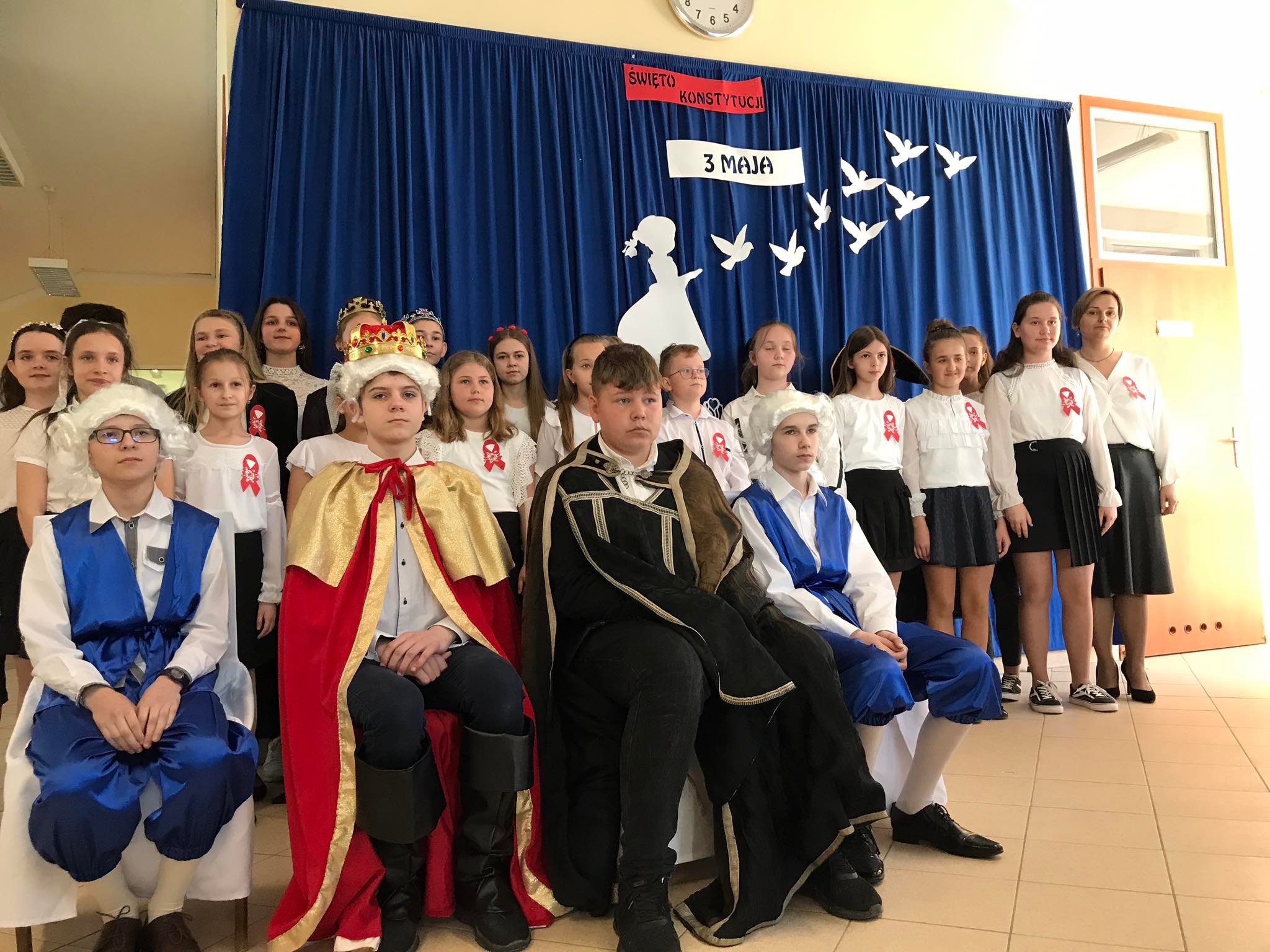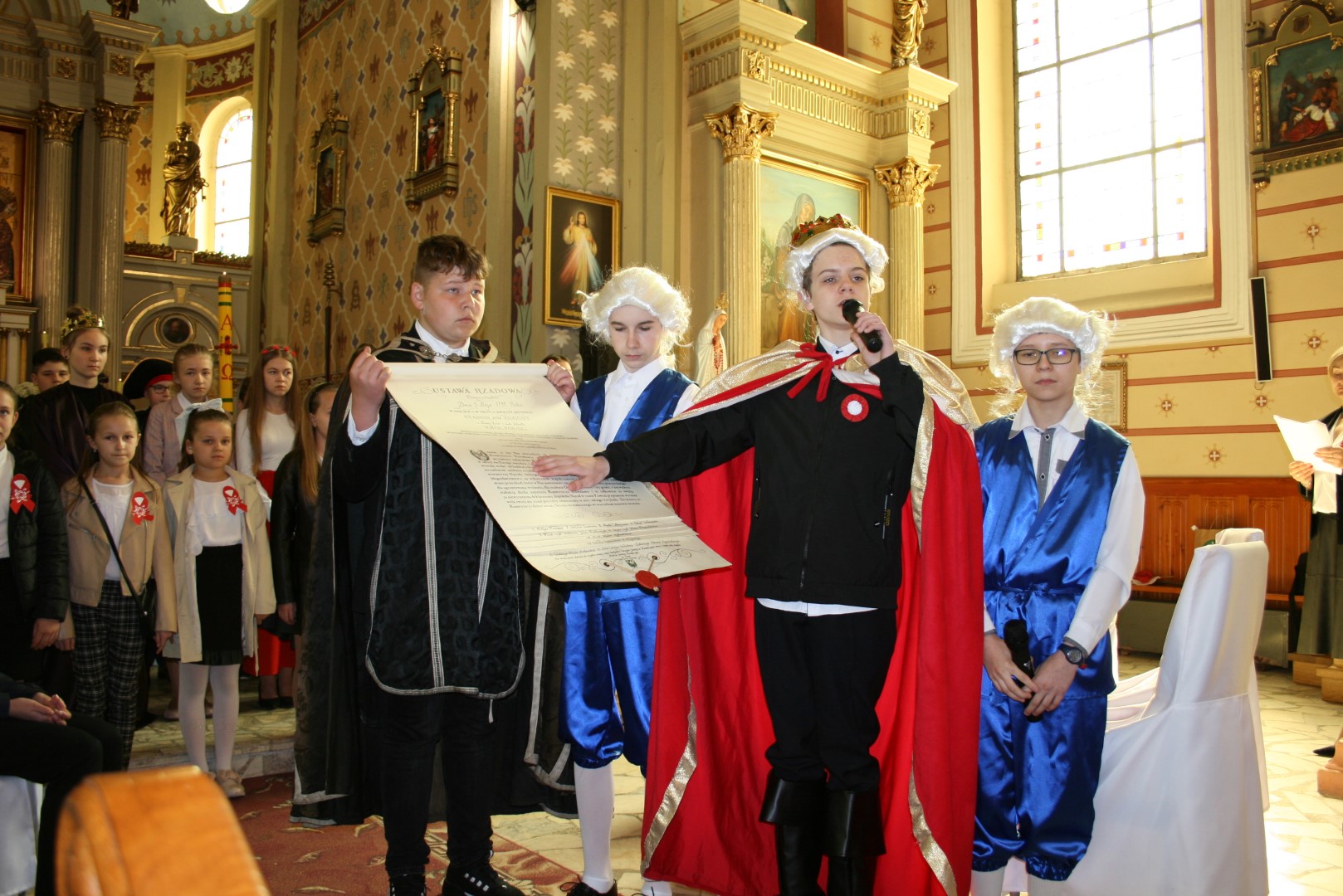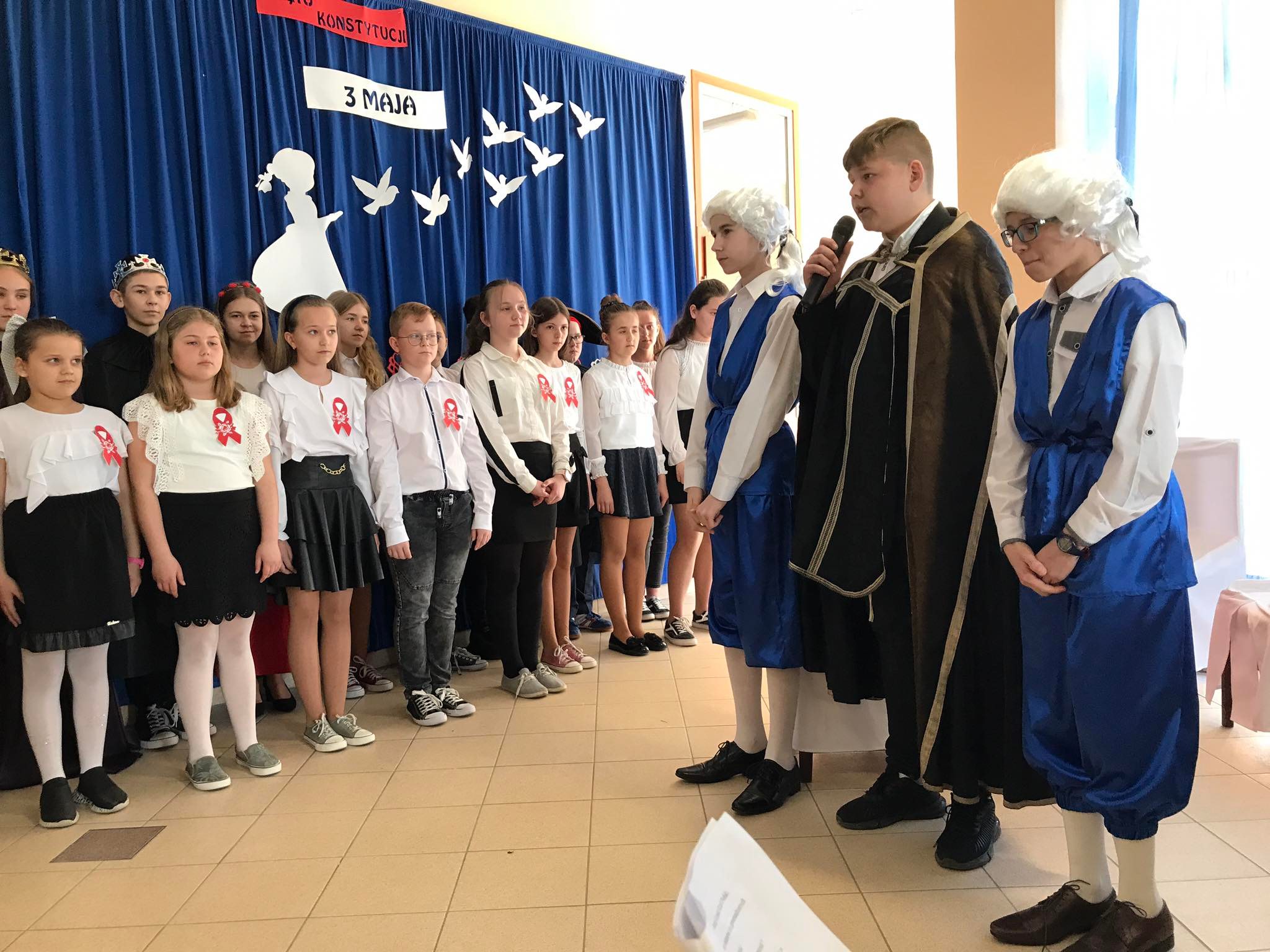 Konstytucja 3 Maja to ważne i piękne święto – święto każdego Polaka. Jest ona ukoronowaniem wszystkiego, co dobre i oświecone w polskiej historii i kulturze. Jest świadectwem na to, że Polacy sami znaleźli siły na przezwyciężenie rozkładu państwa i zdobyli się na wytyczenie drogi, która spotkała się z uznaniem całej postępowej Europy. Pamięć o drugiej w dziejach świata spisanej konstytucji narodowej pomagała podtrzymywać polskie dążenia do niepodległości i tworzyć sprawiedliwe społeczeństwo. Uczniowie i pracownicy Szkoły Podstawowej im. Jana Pawła II w Tokarach Pierwszych nie zapominają o tej ważnej dacie. W związku z powyższym w szkole zorganizowano szereg działań upamiętniających 231. rocznicę uchwalenia Konstytucji 3 Maja. Dzieci przygotowały biało – czerwone flagi oraz piękne kotyliony. Nasza szkoła, pamiętając o tych jakże ważnych dla Polaków wydarzeniach, 29 kwietnia zorganizowała również uroczystą akademię. Uczniowie klas IV - VIII pod kierunkiem pani Małgorzaty Krawczyk przygotowali piękną lekcję historii przypominającą ten doniosły fakt. Apel rozpoczęto wprowadzeniem sztandaru oraz odśpiewaniem hymnu państwowego. Zaprezentowano także historię konstytucji. Przypomniano zebranym, że ten ważny dokument uchwalono na Zamku Królewskim w Warszawie przez Sejm Czteroletni. Uczniowie wcielili się w różne role. Na szkolnej scenie można było zobaczyć m. in.: Ignacego Potockiego, Hugo Kołłątaja, Stanisława Małachowskiego oraz Króla Stanisława Augusta Poniatowskiego. Zwrócono też uwagę na to, że rocznica uchwalenia Konstytucji 3 Maja nazywana jest świętem wolności i radości.