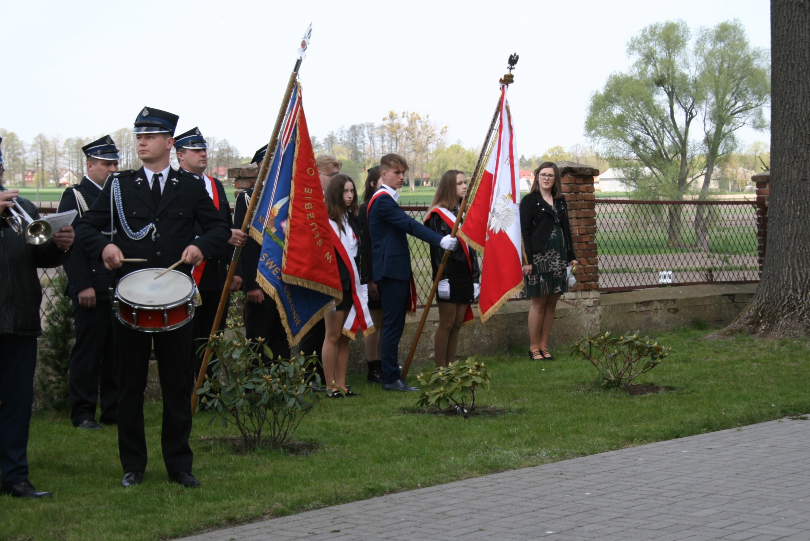 Bohaterstwo, waleczność i męstwo naszych przodków uczcili również mieszkańcy Gminy Kawęczyn. Narodowe świętowanie rozpoczęli oni 3 maja na Skwerze 650-lecia Tokar. Uroczystość uświetniły poczty sztandarowe, a wśród nich poczet sztandarowy Szkoły Podstawowej im. Jana Pawła II w Tokarach Pierwszych w składzie: Cecylia Boraś, Wiktoria Kolasińska oraz Patryk Kleśta. Nie zabrakło też orkiestry dętej OSP Tokary, która przeprowadziła kolumnę w kierunku kościoła. Tam, przed kamieniem upamiętniającym poległych za ojczyznę, poszczególne delegacje złożyły kwiaty i oddały hołd bohaterom. W skład delegacji reprezentującej Szkołę Podstawową im. Jana Pawła II w Tokarach Pierwszych weszli: pani Ewa Wojtczak, dyrektor szkoły oraz Jakub Macudziński, uczeń klasy VIII. Druga część uroczystości miała miejsce w kościele i rozpoczęła się montażem słowno – muzycznym zaprezentowanym przez uczniów naszej szkoły. Serdecznie dziękujemy uczniom i nauczycielom za pomoc w organizacji apelu, dyrekcji za życzliwe wsparcie, a widzom – za ciepłe przyjęcie.