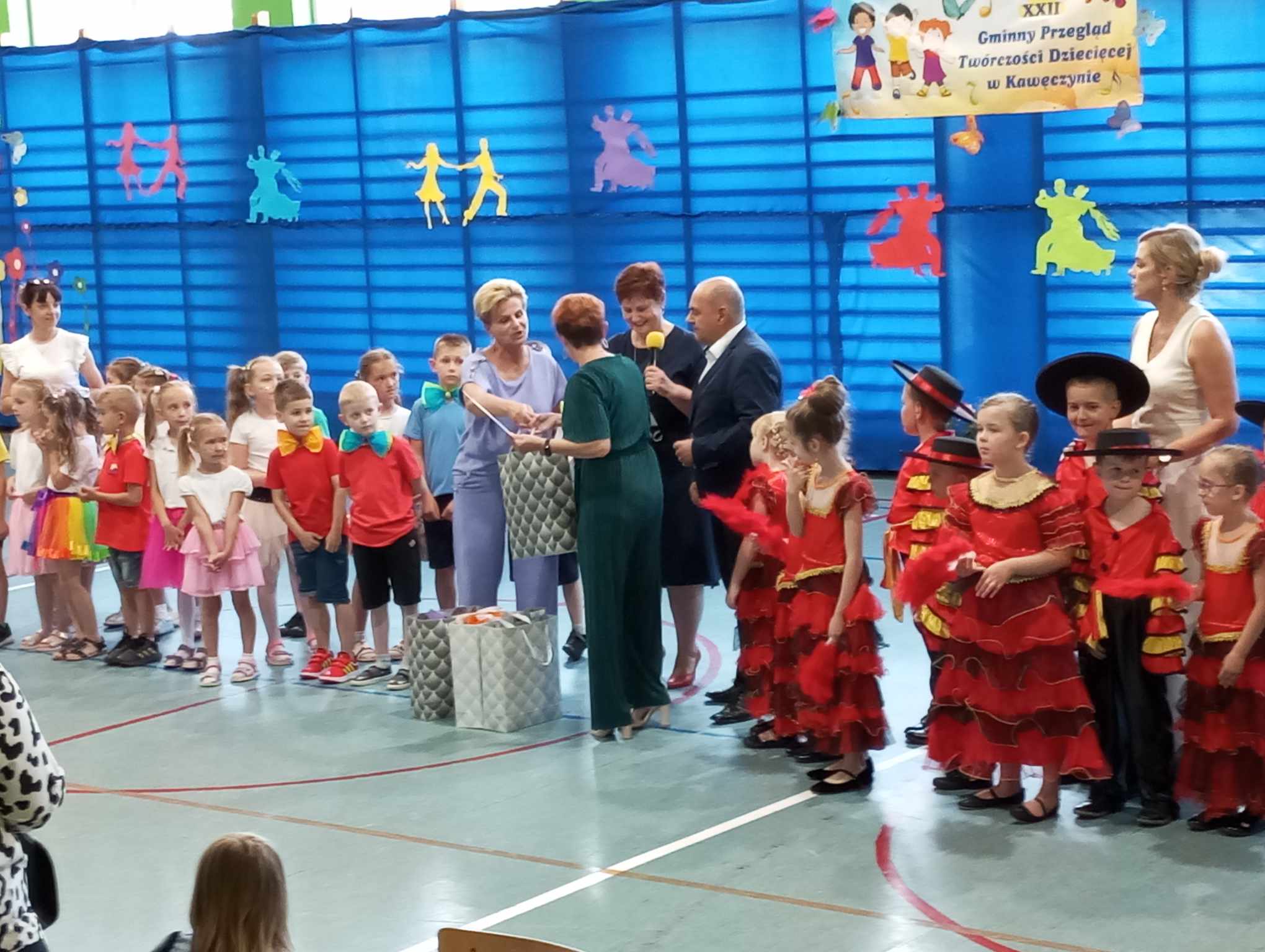 W dniu 06.06.2024r. w Kawęczynie odbył się XXII Gminny Przegląd Twórczości Dziecięcej. Organizatorem tegorocznego przeglądu był oddział przedszkolny przy Szkole Podstawowej im. Marii Skłodowskiej - Curie w Kawęczynie z wychowawcą panią Beatą Pabisiak. W imprezie tej biorą udział dzieci sześcioletnie ze wszystkich oddziałów przedszkolnych przy szkołach podstawowych oraz z Gminnego Przedszkola. Przy bardzo licznej widowni mali artyści przedstawili piękne występy artystyczne. Dzieci z oddziału przedszkolnego przy naszej Szkole Podstawowej im. Jana Pawła II w Tokarach Pierwszych zaprezentowały się w dziecięcej formacji perkusyjnej. Motywem przewodnim występu były przeboje muzyki filmowej. Dzieci do występu przygotowała pani Renata Piontkowska. Jury wysoko oceniło występy małych artystów i wszystkim przyznano I miejsce. To był uroczysty dzień dla wszystkich małych artystów, którzy otrzymali wspaniałe prezenty. Na zakończenie uroczystości organizatorzy przewidzieli poczęstunek dla wszystkich uczestników, jury i opiekunów.
