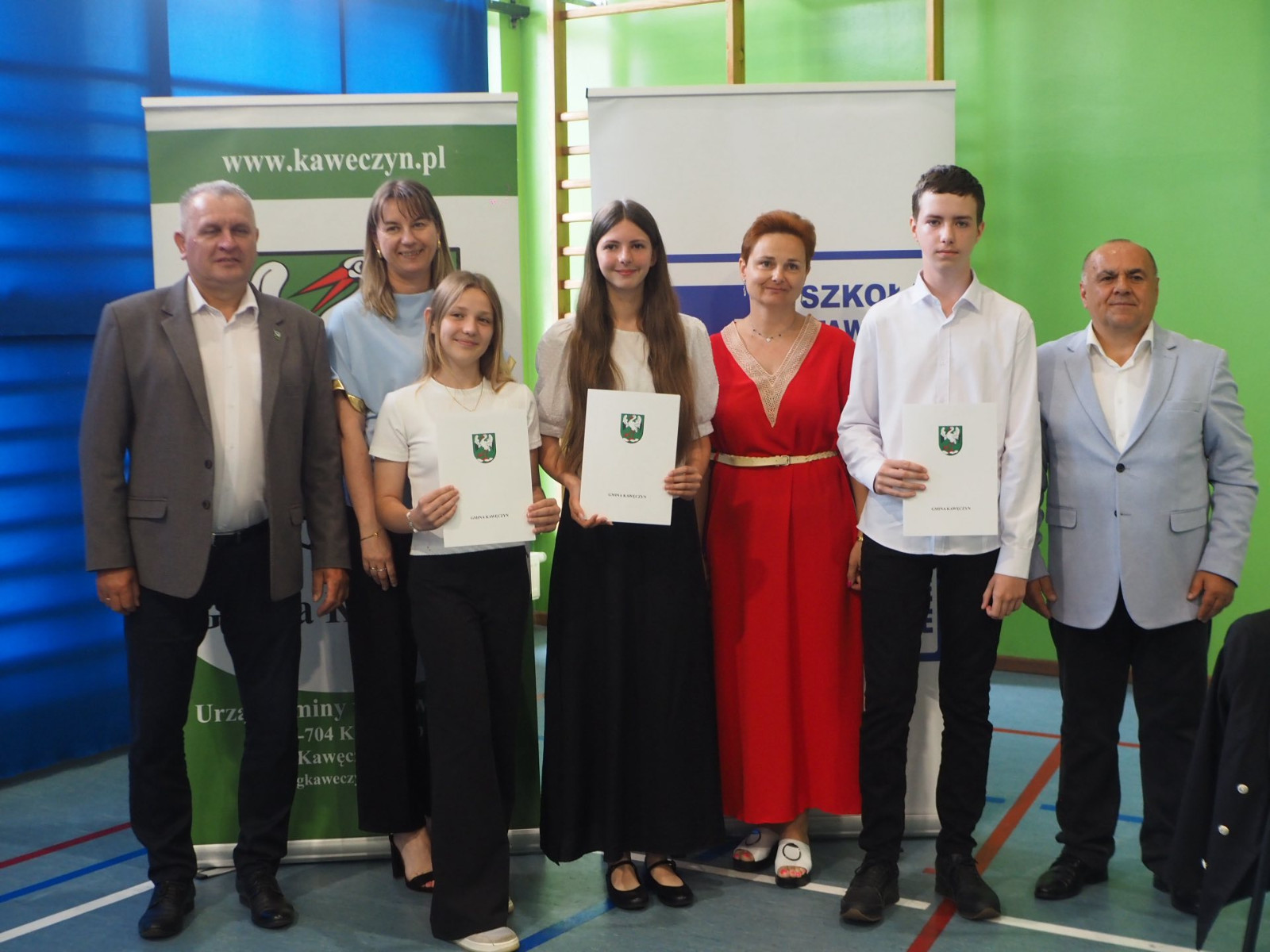 Wspaniałe osiągnięcia uczniów naszej szkoły podczas tegorocznego Konkursu Wiedzy o  Gminie Kawęczyn to prawdziwy powód do dumy dla lokalnej społeczności. W rywalizacji, mającej na celu zgłębianie wiedzy o historii, kulturze oraz działalności samorządu gminy, najwyższe laury przypadły Joannie Juszczak (uczennicy klasy 8) oraz Elizie Wardziak, uczennicy klasy 6. Konkurs, który odbył się w atmosferze życzliwości i wzajemnego wsparcia, miał na celu nie tylko sprawdzenie wiedzy, ale także aktywizację uczniów do  działań na rzecz rozwoju gminy. Konkurs Wiedzy o Gminie Kawęczyn miał szereg ważnych celów, których zadaniem było wzmacnianie więzi między uczniami a ich małą ojczyzną. Uczestnicy mieli okazję zapoznać się z bogatą historią i tradycjami swojego regionu, zapoznali się  ze  strukturą gminy, jej aktualnymi przedsięwzięciami oraz kluczowymi aspektami związanymi z  funkcjonowaniem lokalnej administracji. Udział w  konkursie pozwolił jego uczestnikom na  nawiązanie więzi z rówieśnikami z innych szkół, co miało na celu budowanie pozytywnych relacji oraz atmosfery współpracy i empatii. W konkursie wzięli również udział uczniowie z  innych klas. Choć nie zajęli miejsc na podium, również zaprezentowali bardzo wysoki poziom wiedzy. Lena Rutecka (klasa 5), Lena Zduniak (klasa 7) oraz Wiktoria Macudzińska (klasa 8) udowodniły, że są doskonale przygotowane do wyzwań związanych z poznawaniem historii swojej gminy i  zaangażowane w jej rozwój. Ich udział w konkursie stanowi dowód na  to, jak ważne jest budowanie tożsamości regionalnej od najmłodszych lat. Gratulujemy wszystkim uczestnikom i laureatom tegorocznej edycji konkursu! Wasza pasja i zaangażowanie są dowodem na to, jak ważne jest pielęgnowanie tradycji i rozwój małych ojczyzn. Życzymy dalszych sukcesów w  nauce i działaniach na rzecz Gminy Kawęczyn!