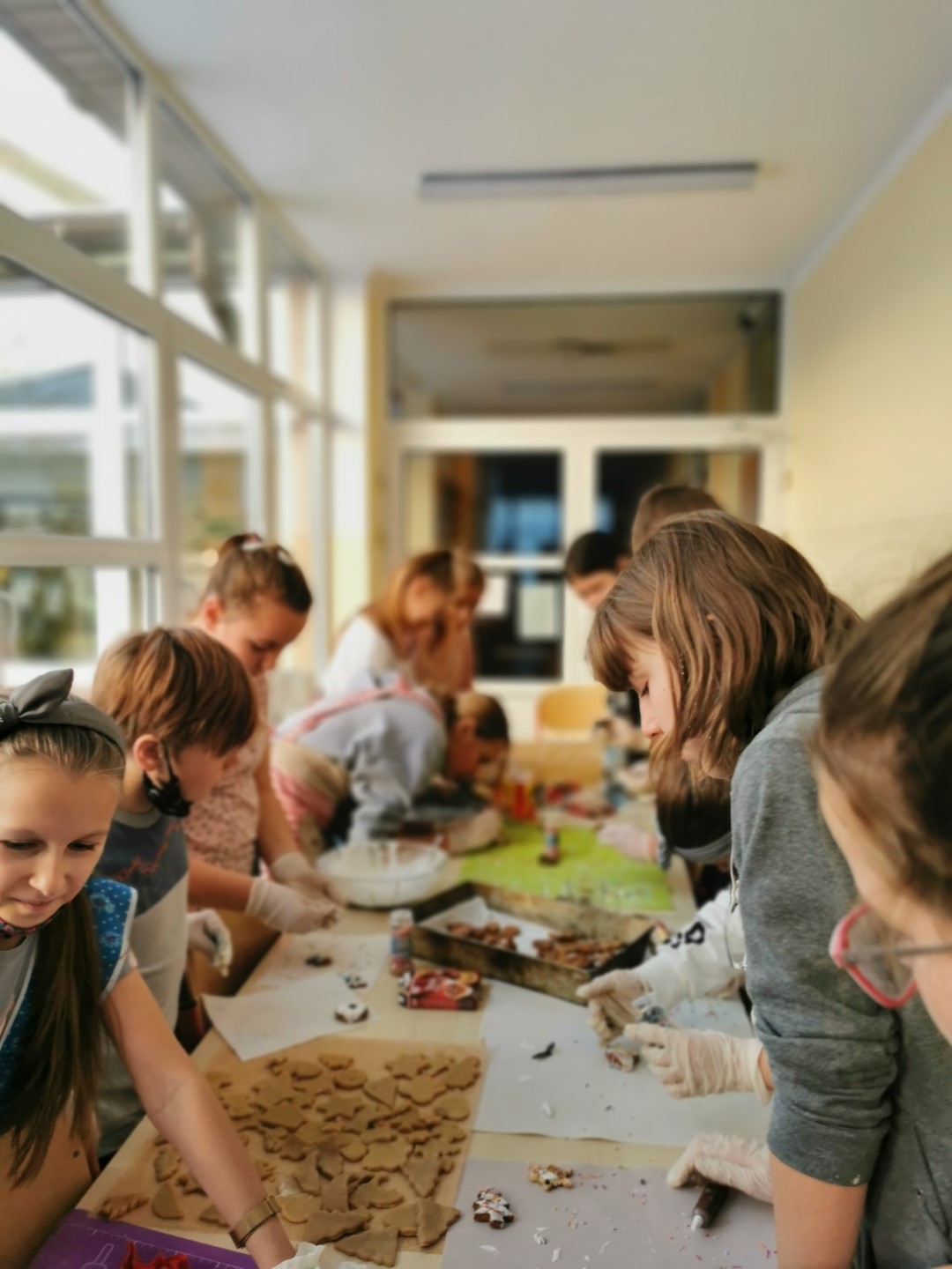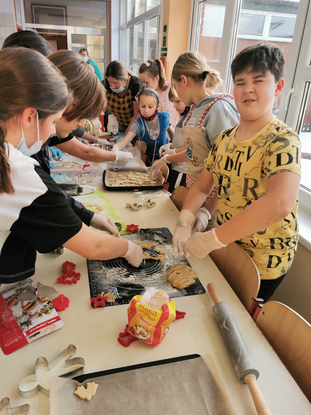 W dniu 10 grudnia 2021 roku w naszej szkole odbyły się warsztaty kulinarne ph. "Święta pachnące piernikiem". Uczniowie z klas 4-7 pod kierunkiem p. Ewy Chojnackiej, p. Magdaleny Tomczyk i p. Katarzyny Koryckiej przygotowali pierniczki i pięknie je udekorowali. Inicjatorem warsztatów był Samorząd Uczniowski. To był piękny dzień.