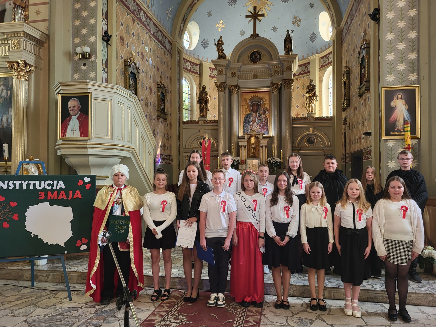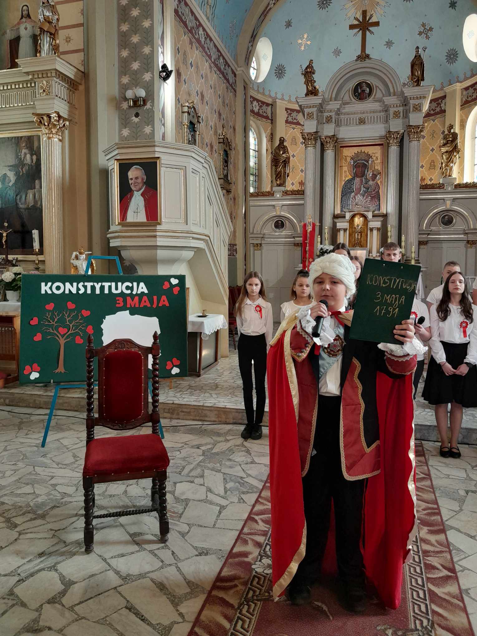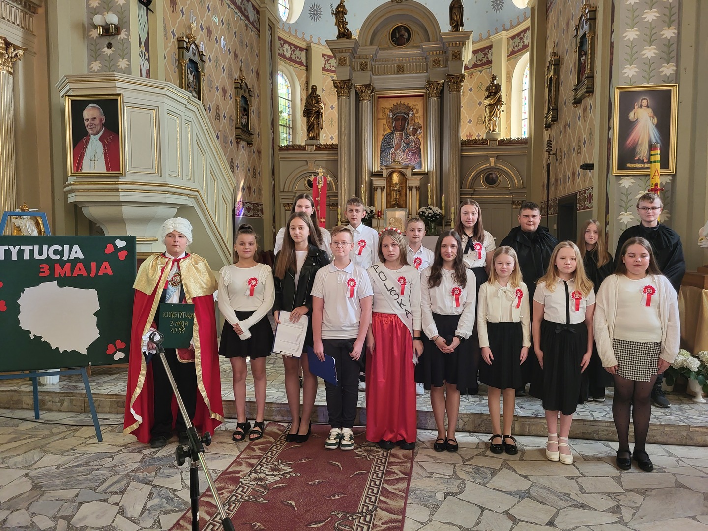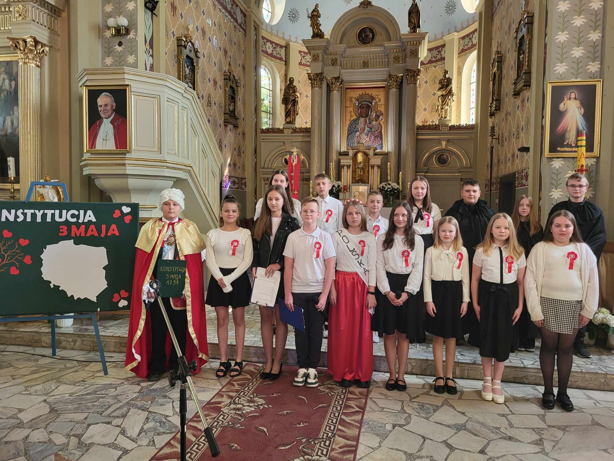 W dalszej części uroczystości wszyscy udali się do kościoła, gdzie uczniowie ze Szkoły Podstawowej im. Jana Pawła II w Tokarach Pierwszych, pod kierunkiem pań: Ilony Kaźmierczak i Renaty Piontkowskiej – nauczycielek ze Szkoły Podstawowej w Tokarach Pierwszych, zaprezentowali apel poświęcony historii uchwalenia Konstytucji 3 Maja.