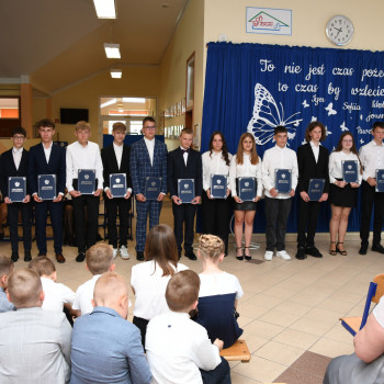 W mijającym roku szkolnym możemy być dumni z naszych uczniów. Wielu z nich otrzymało dobre i bardzo dobre wyniki w nauce oraz wzorowe zachowanie. Są również tacy, którzy stawali na podium w  konkursach przedmiotowych. Nauczyciele nie zapomnieli również o tych, którzy chętnie pracowali na rzecz klasy i szkoły. W związku z powyższym zostały też  wręczone  nagrody za  aktywną pracę na rzecz Samorządu Uczniowskiego oraz  służbę w Poczcie Sztandarowym.  Sukcesy uczniów są dowodem na to, że warto być wytrwałym, ciekawym świata i otwartym na nowe wyzwania. Niejednokrotnie to właśnie ci systematyczni uczniowie mogą stać się inspiracją dla swoich rówieśników – pokazując, że nauka i odpowiedzialność mogą iść w parze z pasją, kreatywnością  i zaangażowaniem.