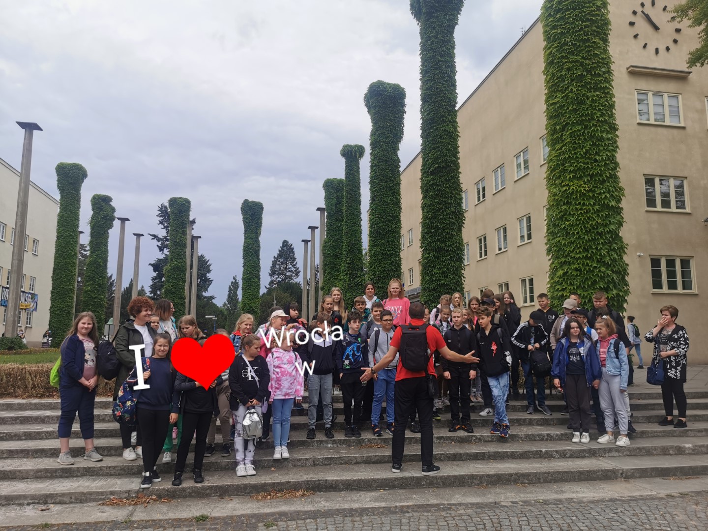 15 czerwca 2023 roku uczniowie klas IV – VIII szkoły podstawowej wraz z opiekunami udali się na jednodniową wycieczkę do Wrocławia. Głównym celem wyjazdu było pogłębienie dotychczasowej teoretycznej wiedzy historycznej młodzieży poprzez bezpośredni kontakt z „żywą historią” oraz rozszerzenie wiedzy z geografii.