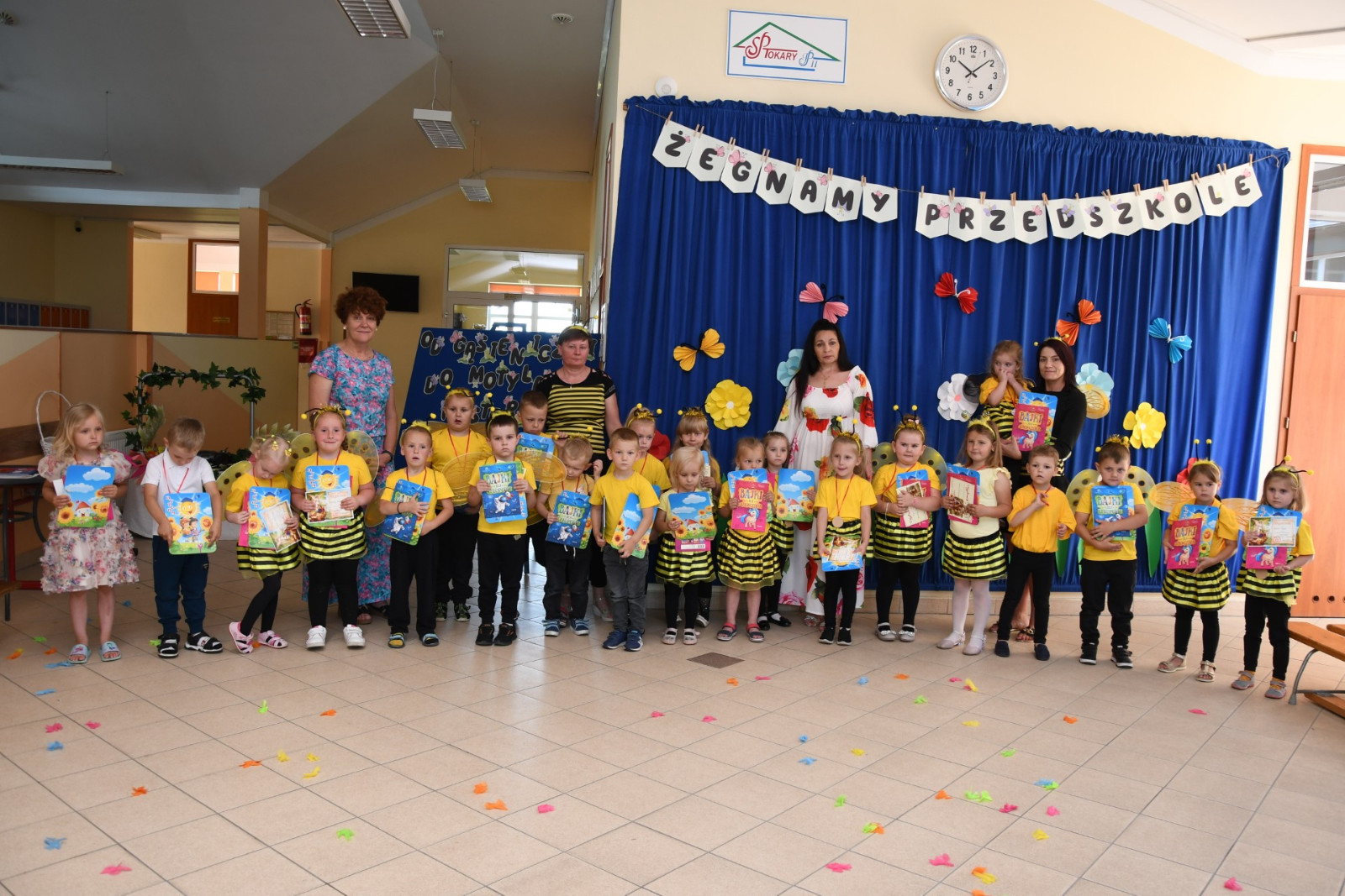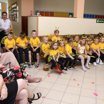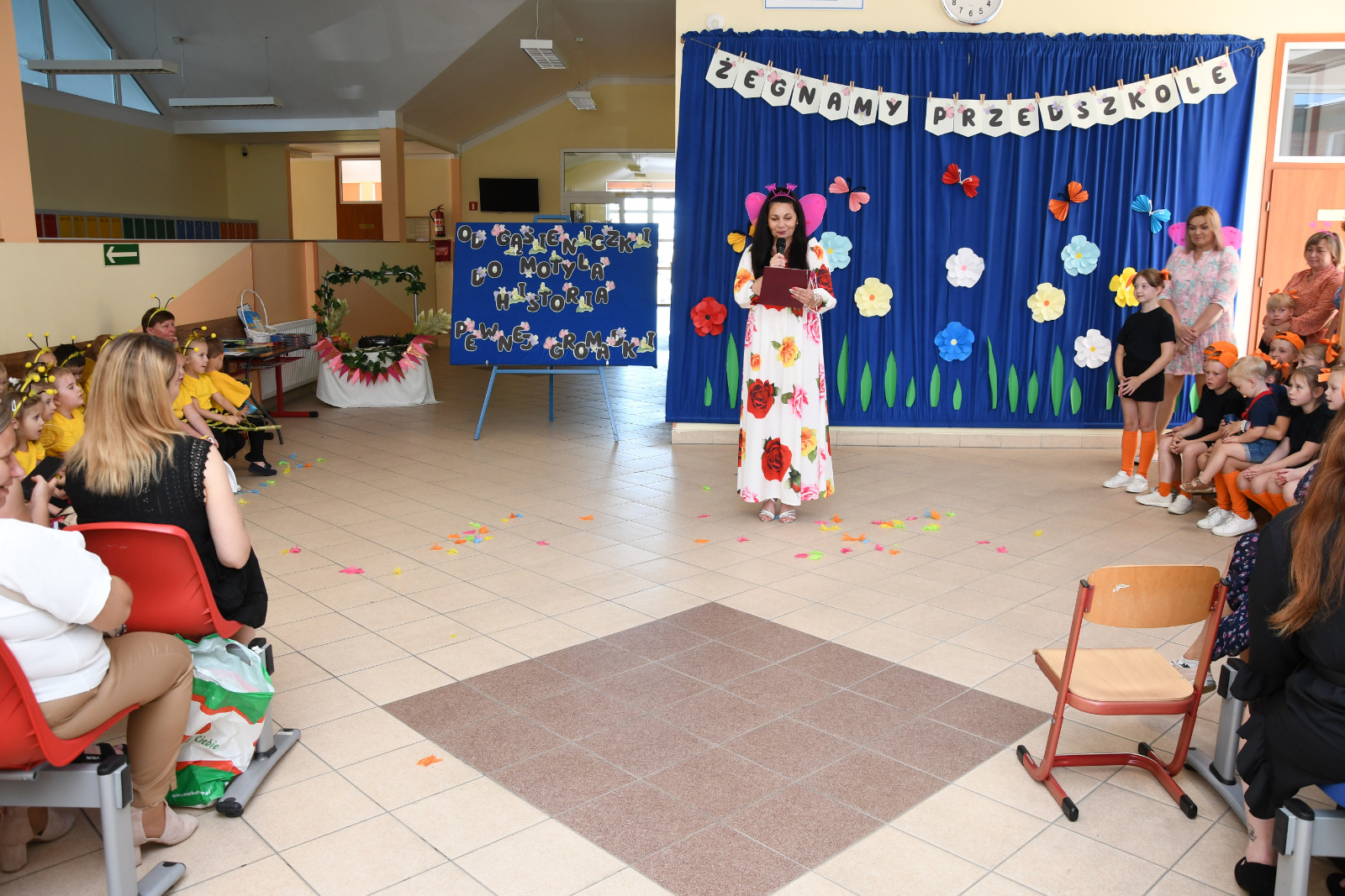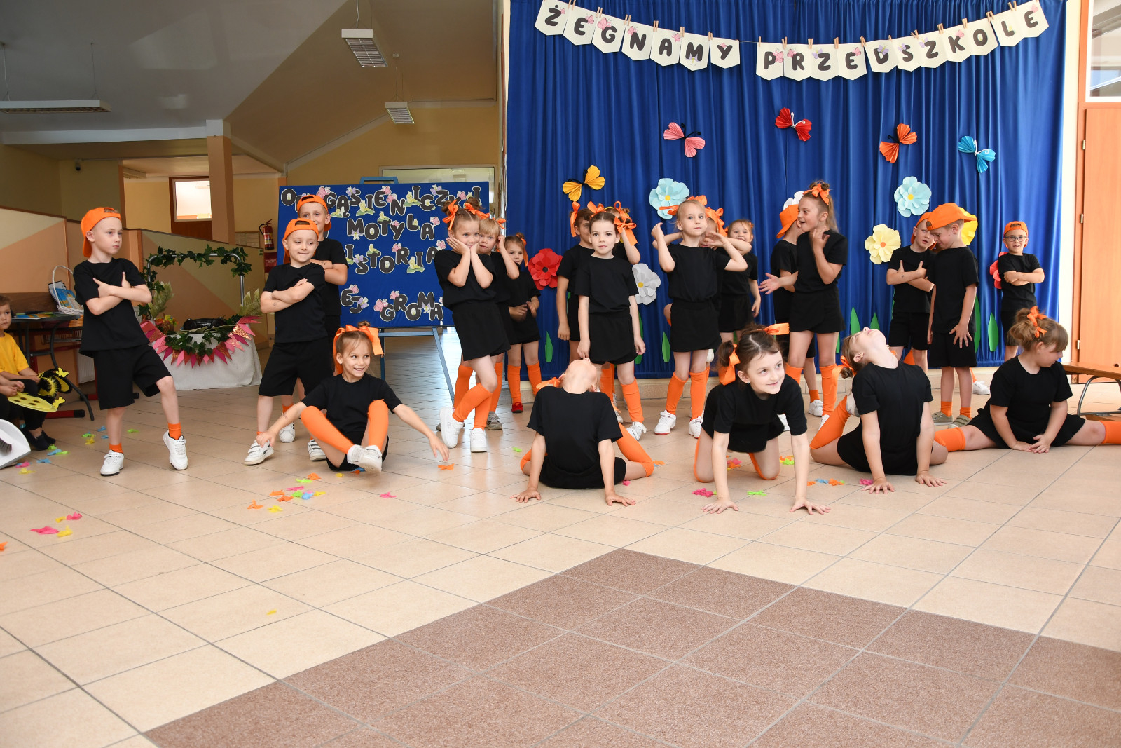 Dnia 26.06.2025 roku zorganizowano uroczyste zakończenie roku przedszkolnego , podczas którego starsze dzieci zaprezentowały przygotowany program artystyczny – były wiersze, piosenki, tańce, a nawet przedstawienie pt. „Od gąsieniczki do motyla – historia pewnej gromadki”. Była to wzruszająca podróż przez wspomnienia, zabawę i wielką przemianę – z małych gąsieniczek w gotowe do lotu motyle. Następnie rozpoczął się występ grupy młodszej, która pożegnała starszych kolegów i starsze koleżanki wierszykami i wspaniałym tańcem do piosenki „Pszczółka Maja”. Na zakończenie starsze dzieci popisały się tańcem do piosenki „APT”. Na twarzach rodziców i wychowawców często pojawiały się łzy wzruszenia i dumy.
