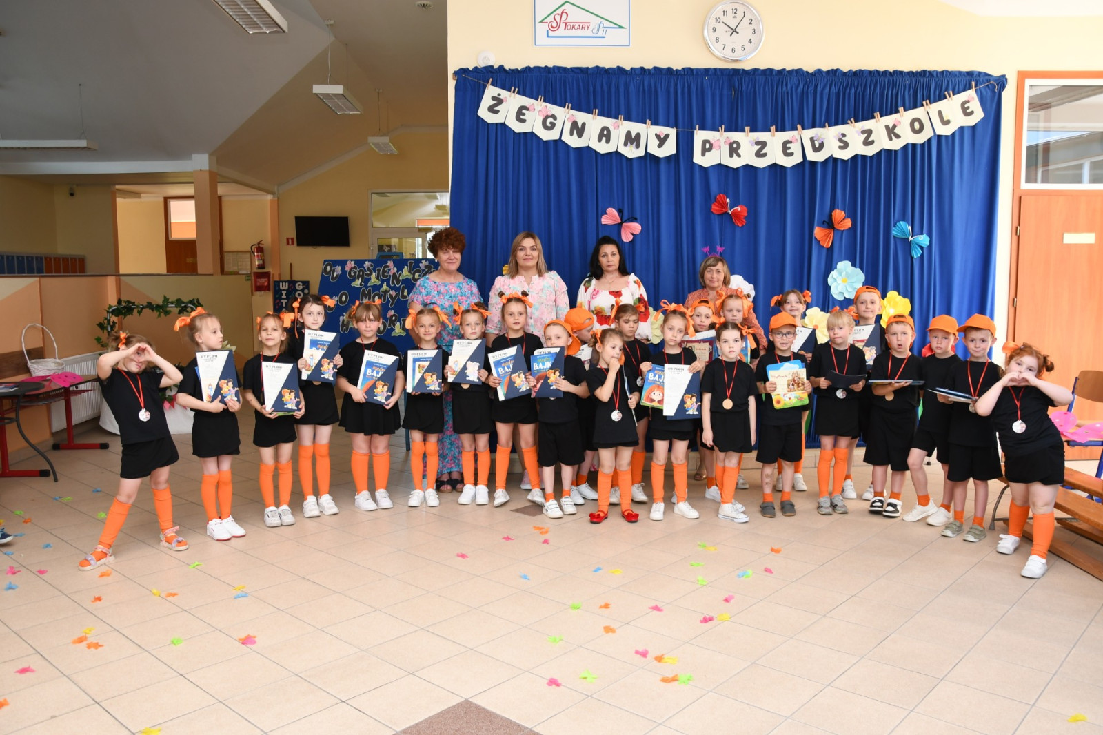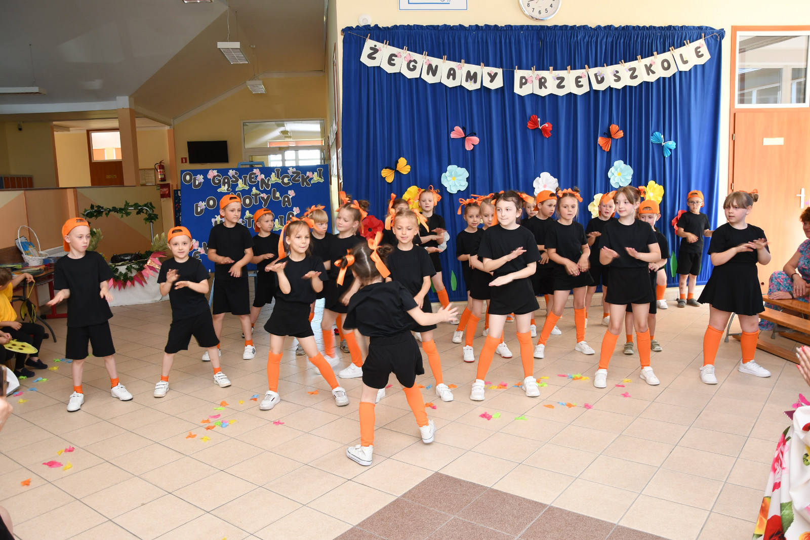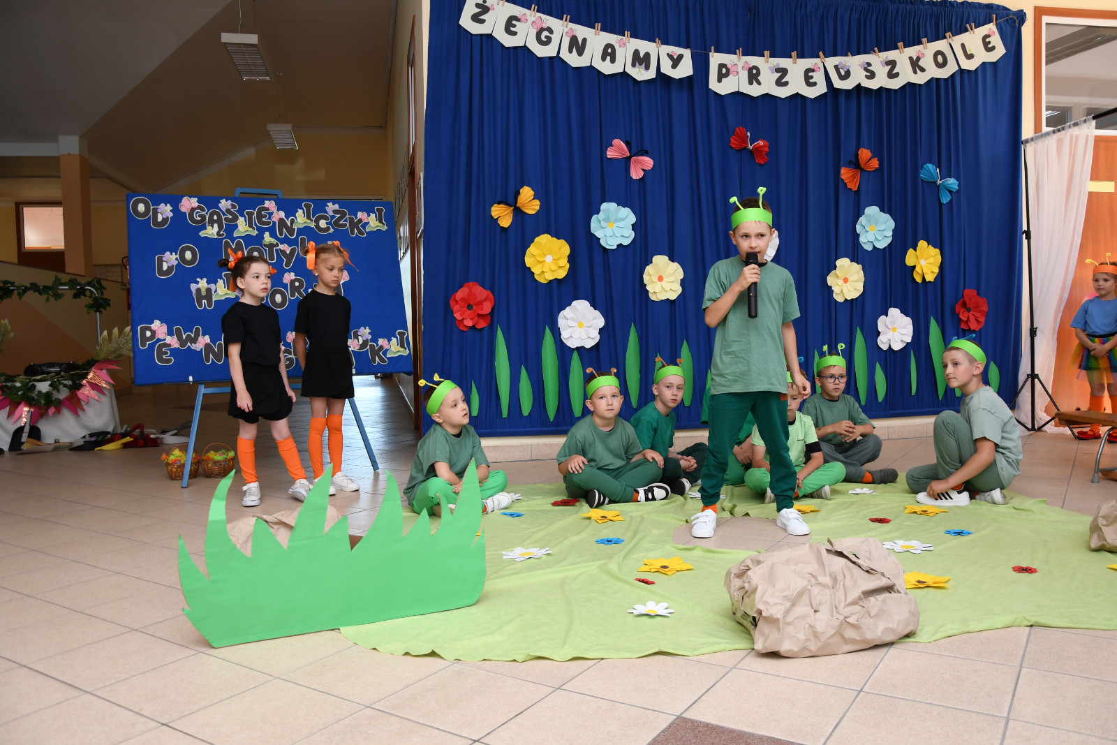 Dnia 26.06.2025 roku zorganizowano uroczyste zakończenie roku przedszkolnego , podczas którego starsze dzieci zaprezentowały przygotowany program artystyczny – były wiersze, piosenki, tańce, a nawet przedstawienie pt. „Od gąsieniczki do motyla – historia pewnej gromadki”. Była to wzruszająca podróż przez wspomnienia, zabawę i wielką przemianę – z małych gąsieniczek w gotowe do lotu motyle. Następnie rozpoczął się występ grupy młodszej, która pożegnała starszych kolegów i starsze koleżanki wierszykami i wspaniałym tańcem do piosenki „Pszczółka Maja”. Na zakończenie starsze dzieci popisały się tańcem do piosenki „APT”. Na twarzach rodziców i wychowawców często pojawiały się łzy wzruszenia i dumy.