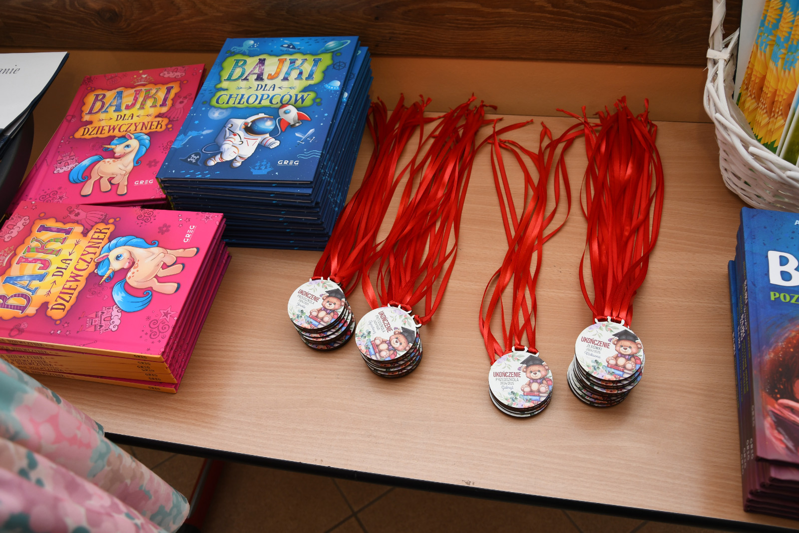 Podczas uroczystości dzieci otrzymały pamiątkowe dyplomy, książeczki oraz drobne upominki – symbole ich ciężkiej pracy, rozwoju i gotowości do kolejnego etapu edukacyjnej podróży. Nie zabrakło również serdecznych podziękowań dla nauczycieli i pracowników przedszkola, którzy każdego dnia wkładali serce w opiekę, edukację i wychowanie dzieci.