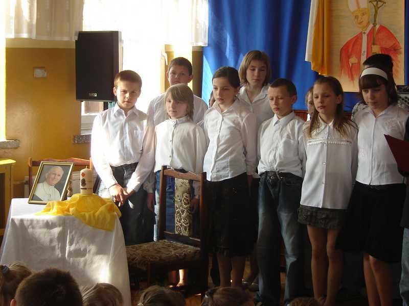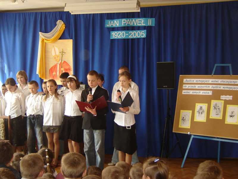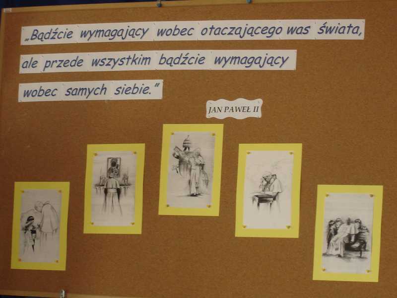 - Przeprowadzenie lekcji wychowawczych związanych z postacią Jana Pawła II;